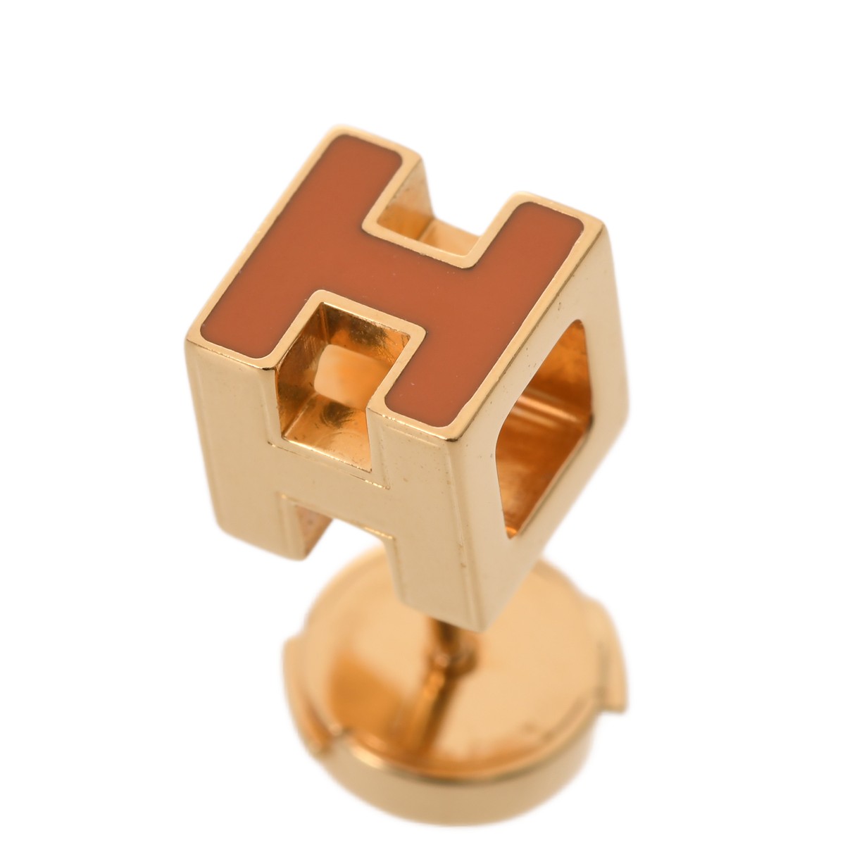 エルメス カードアッシュHキューブ オレンジ/ゴールド金具 エナメル ユニセックス ジュエリー 【中古】【jewelry】