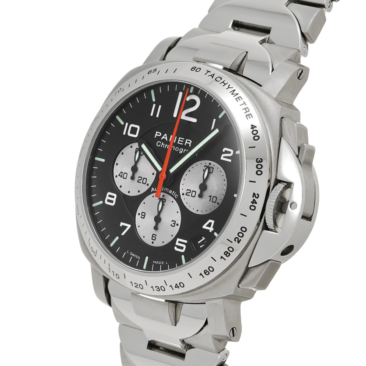 - 防水( 300m) / デイト表示/クロノグラフ/タキメーター/シースルーバック