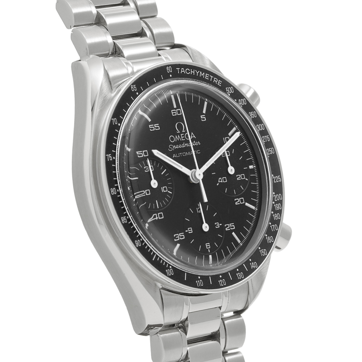 コメントこのスピードマスター リデュースドとも呼ばれるモデルは、オメガの代表的な時計であるスピードマスター プロフェッショナルのツールとして研ぎ澄まされた精悍さはそのままに、ケース径を39ミリに縮小して腕上での収まりを改善すると共に、自動巻きムーブメントの採用によって利便性を向上させることで、より多くの人々の日常に寄り添える時計を目指したものです。
