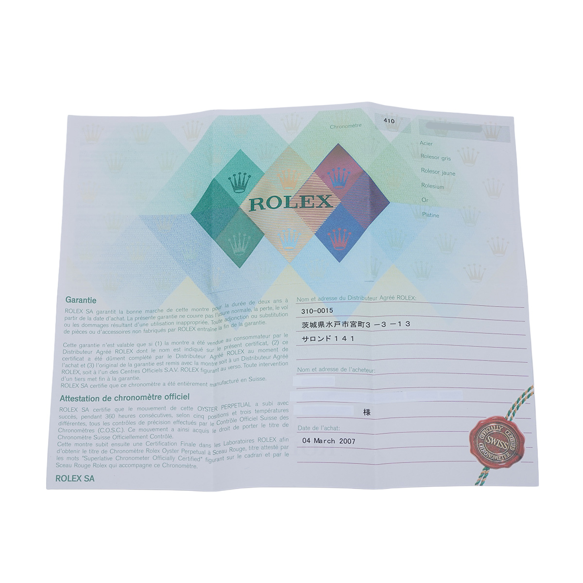 - メーカー保証書( 2007年3月国内購入) / タグ