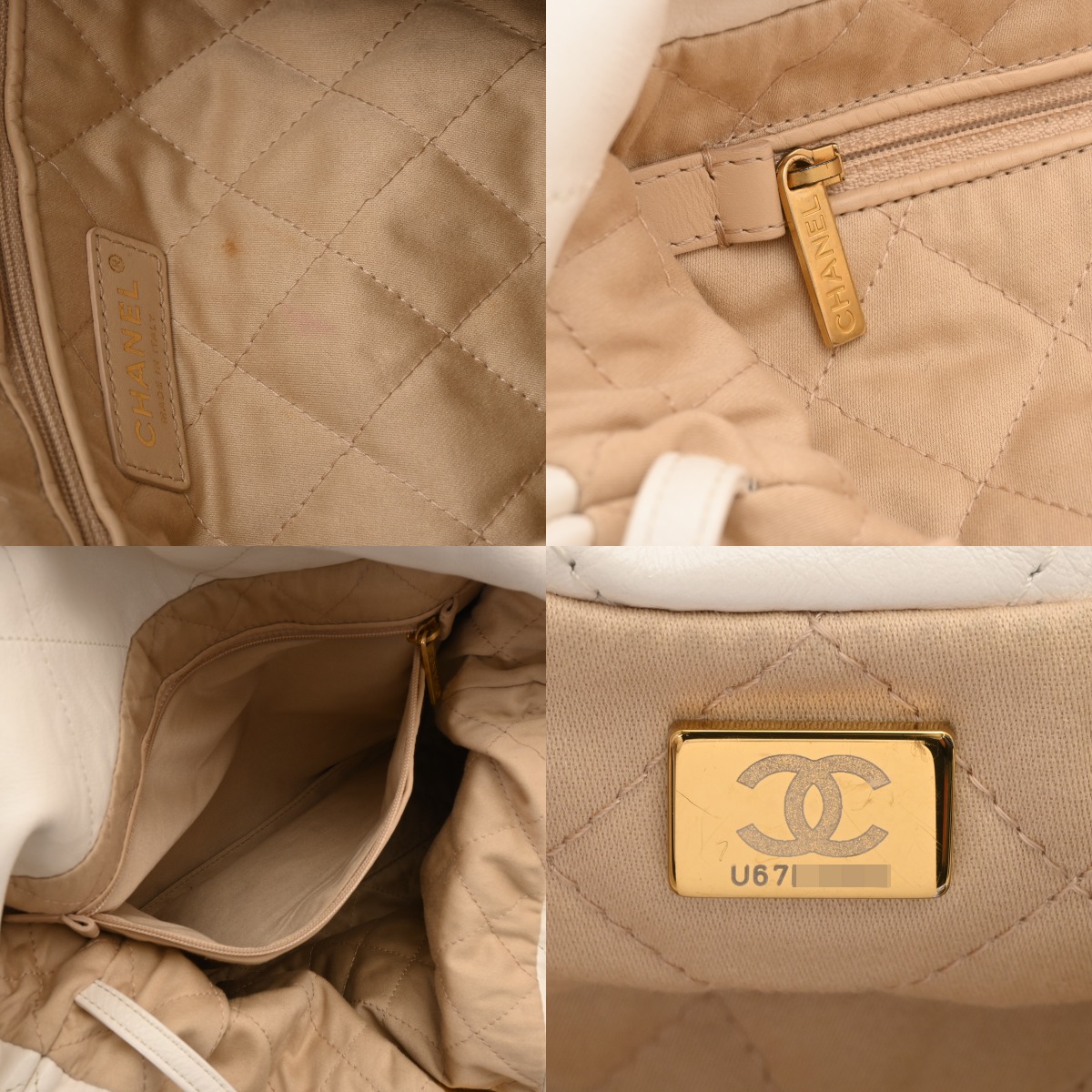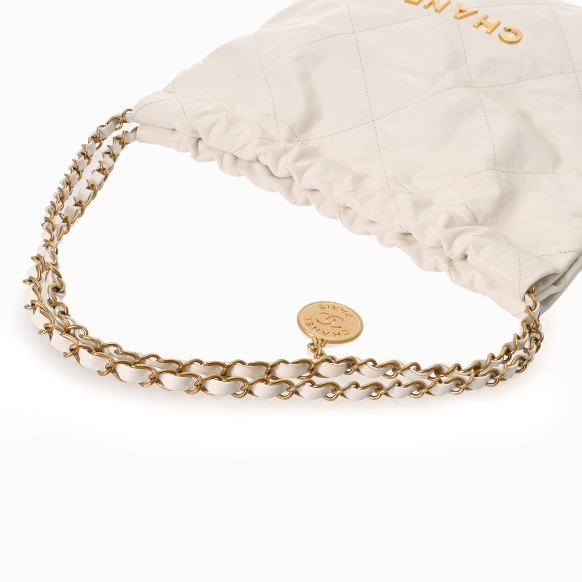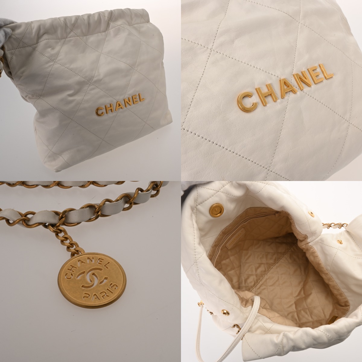 シャネル スモール ハンドバッグ CHANEL22 ホワイト AS3260 シャイニーカーフスキン レディース バッグ 【中古】【bag】