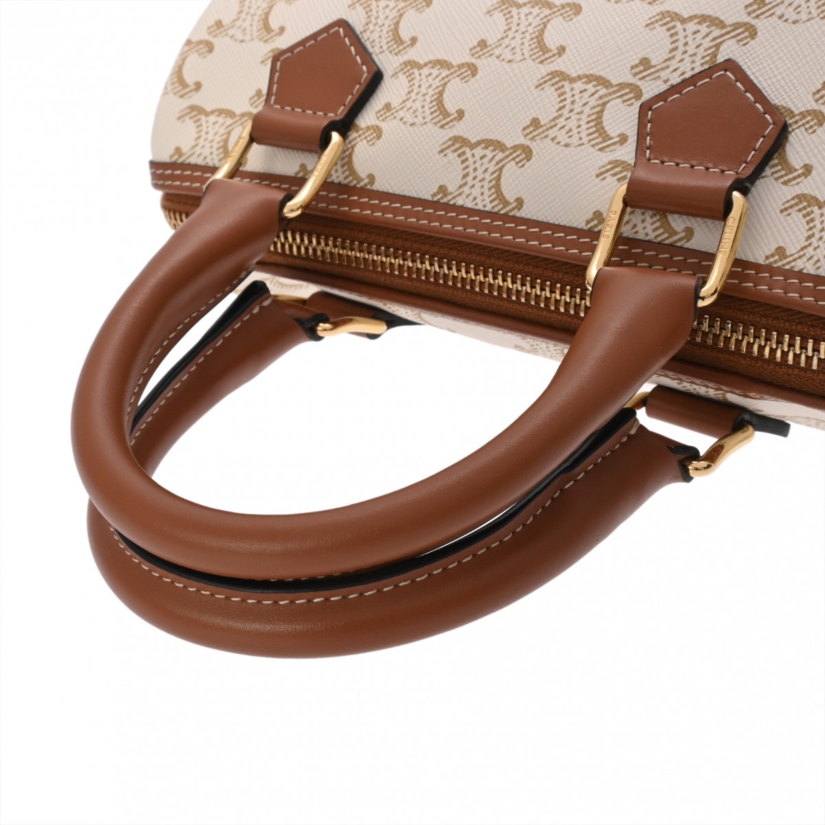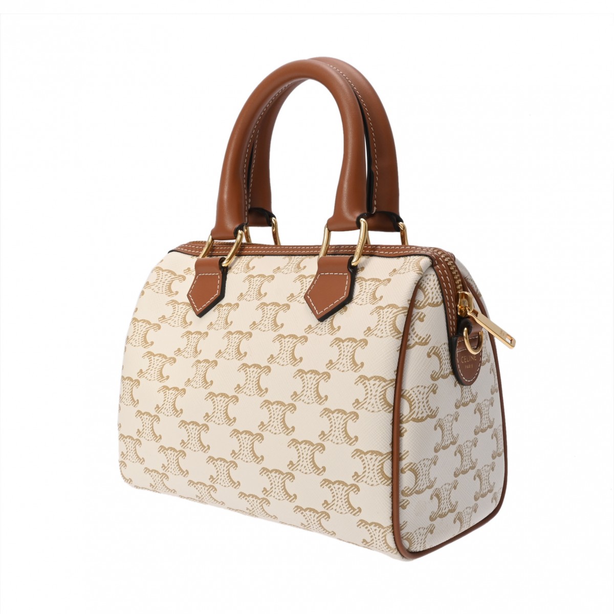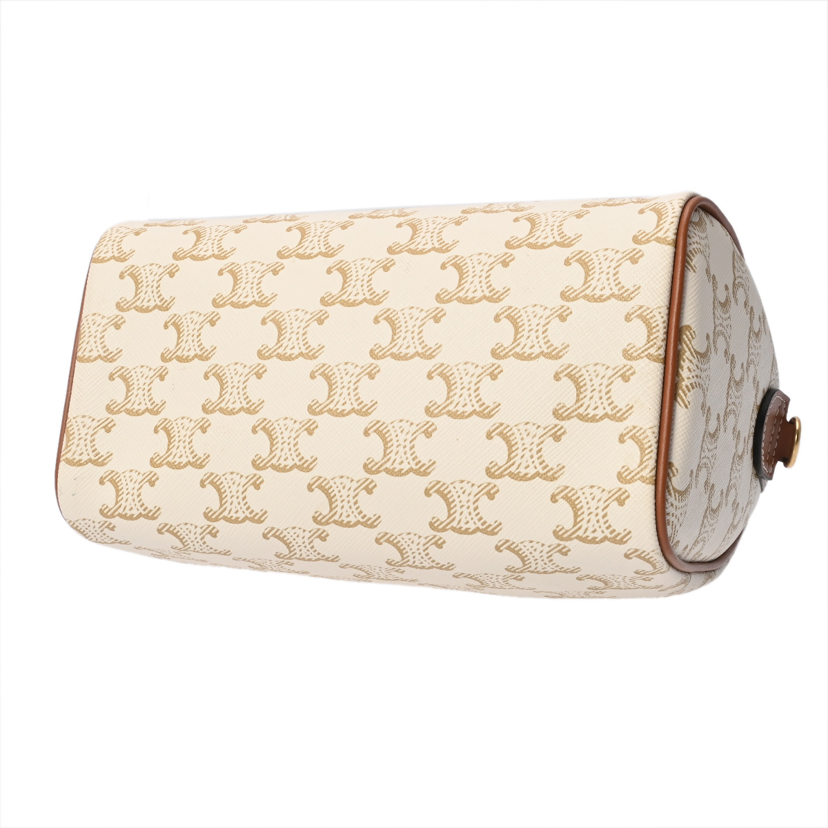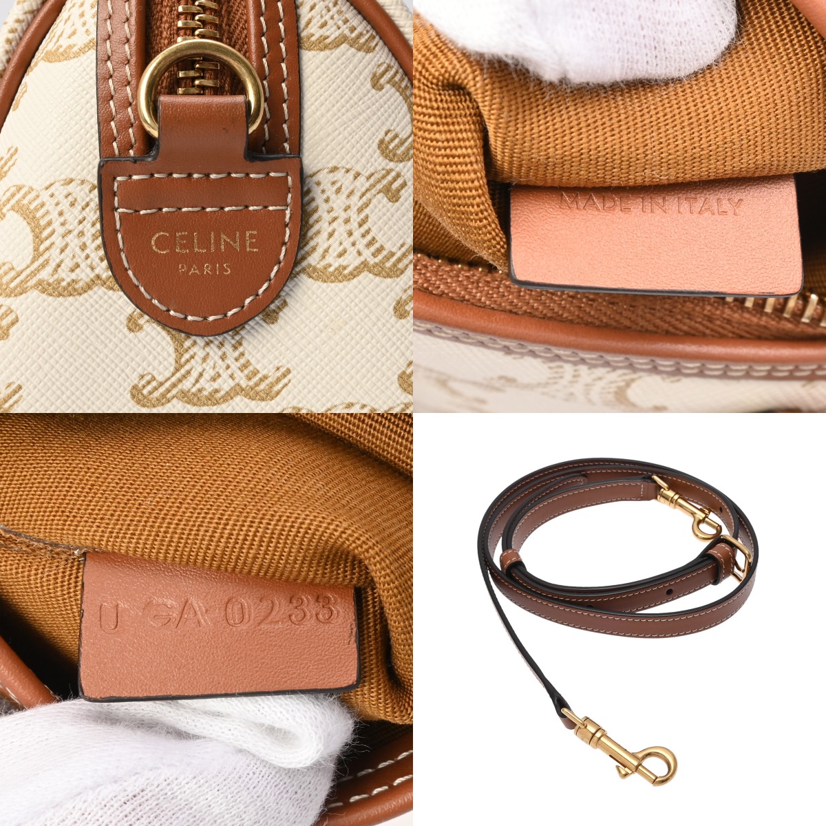 セリーヌ スモール ボストン ホワイト/タン 113772CAS.01BC トリオンフ キャンバス/カーフ レディース バッグ 【中古】【bag】