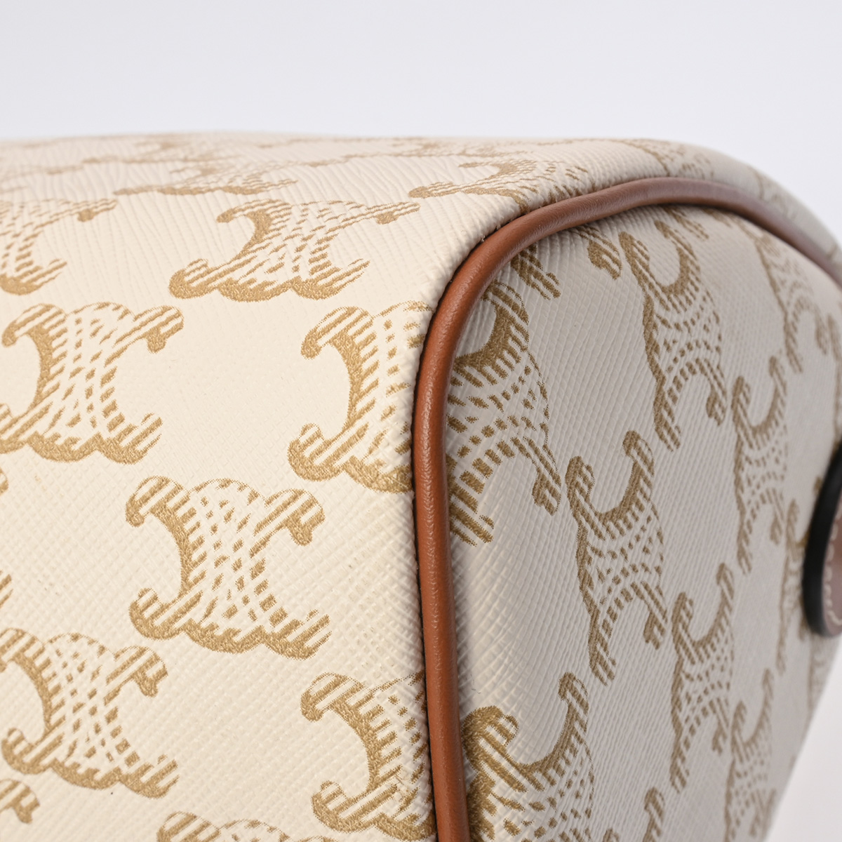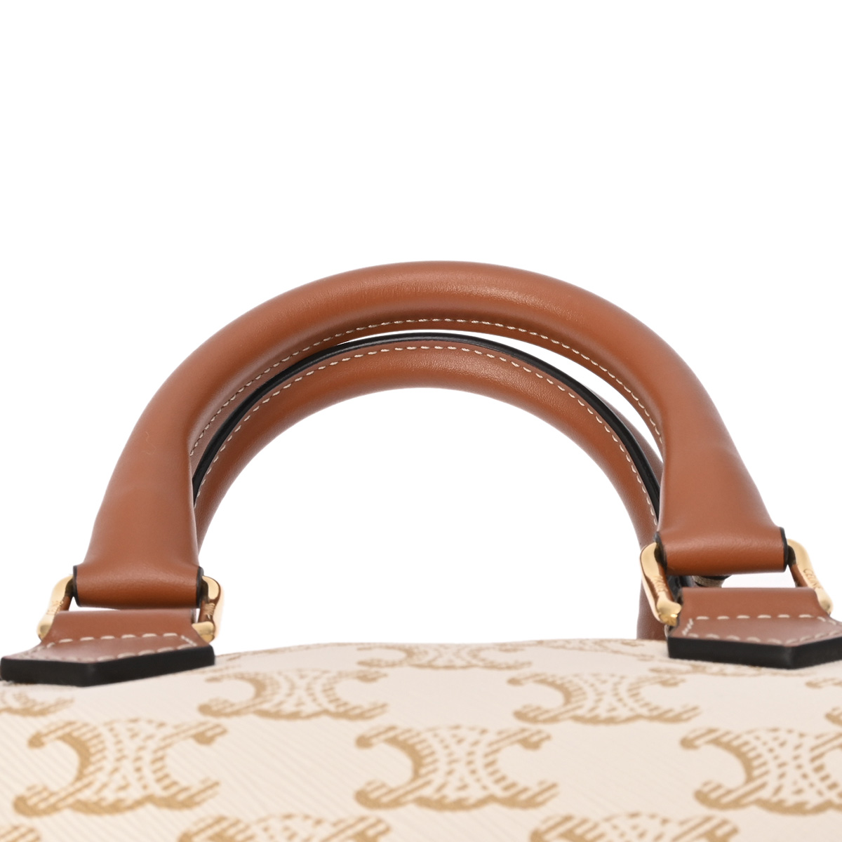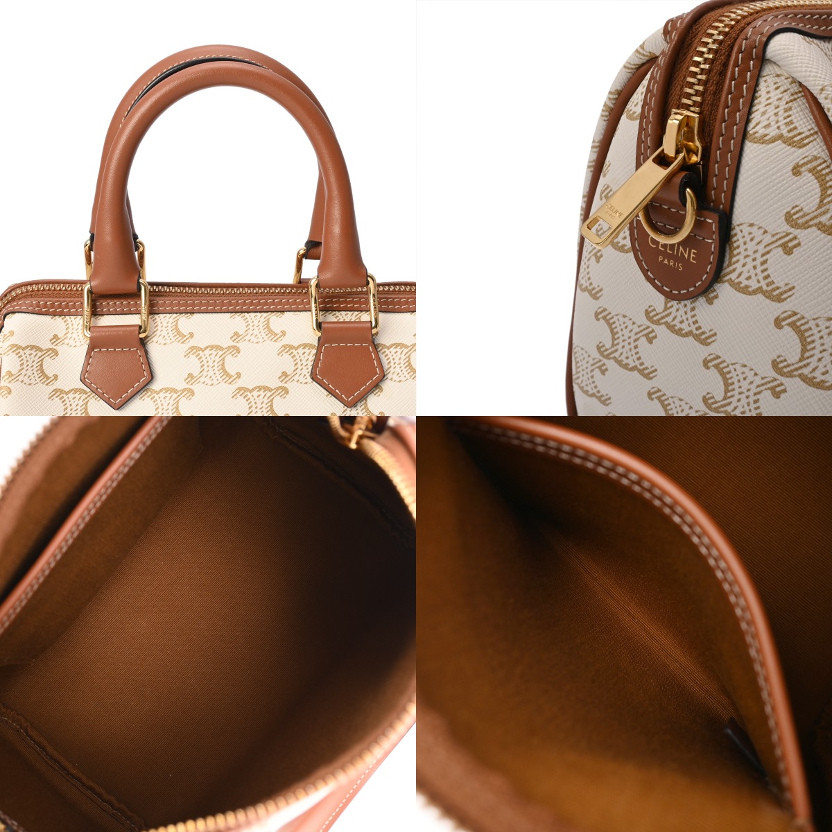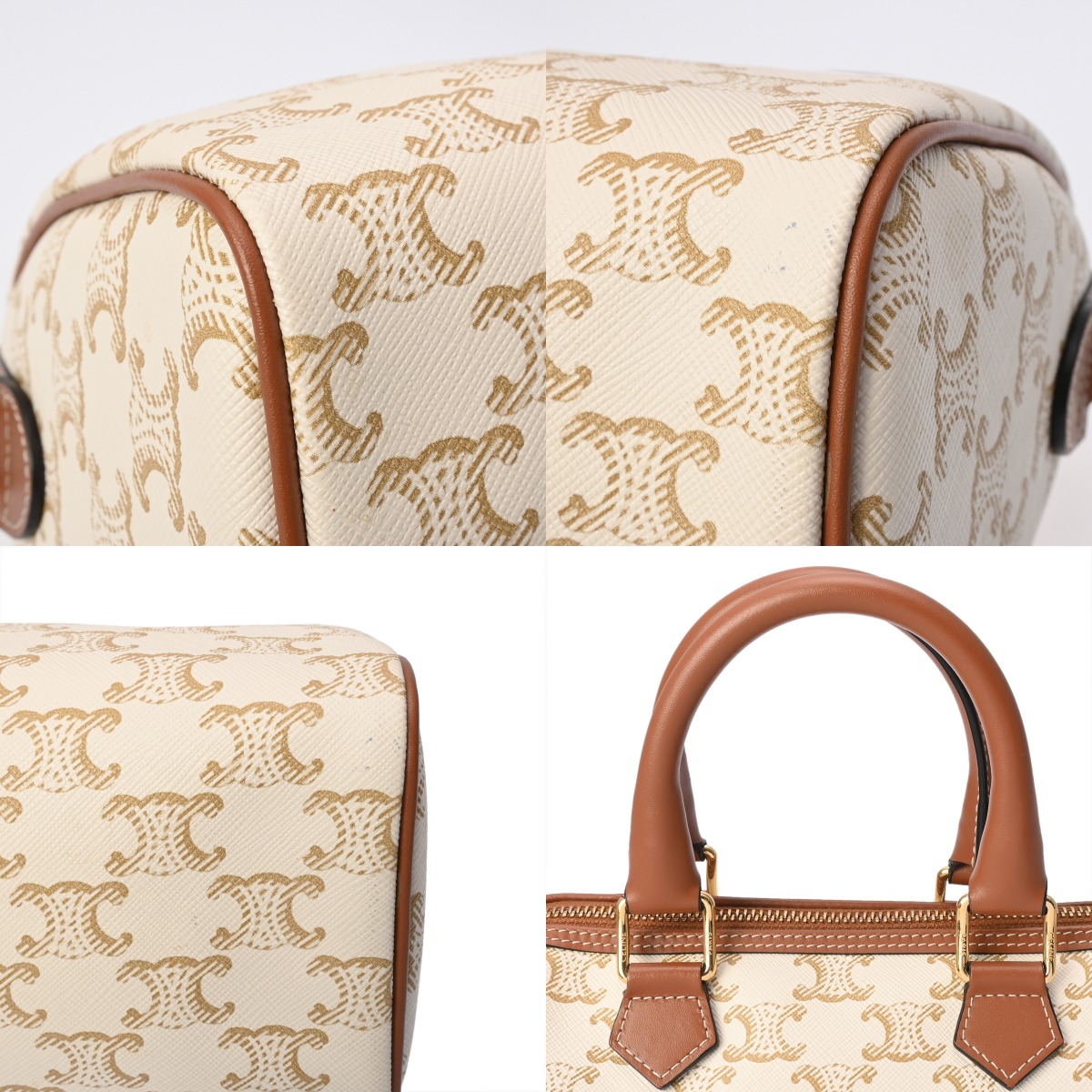 セリーヌ スモール ボストン ホワイト/タン 113772CAS.01BC トリオンフ キャンバス/カーフ レディース バッグ 【中古】【bag】