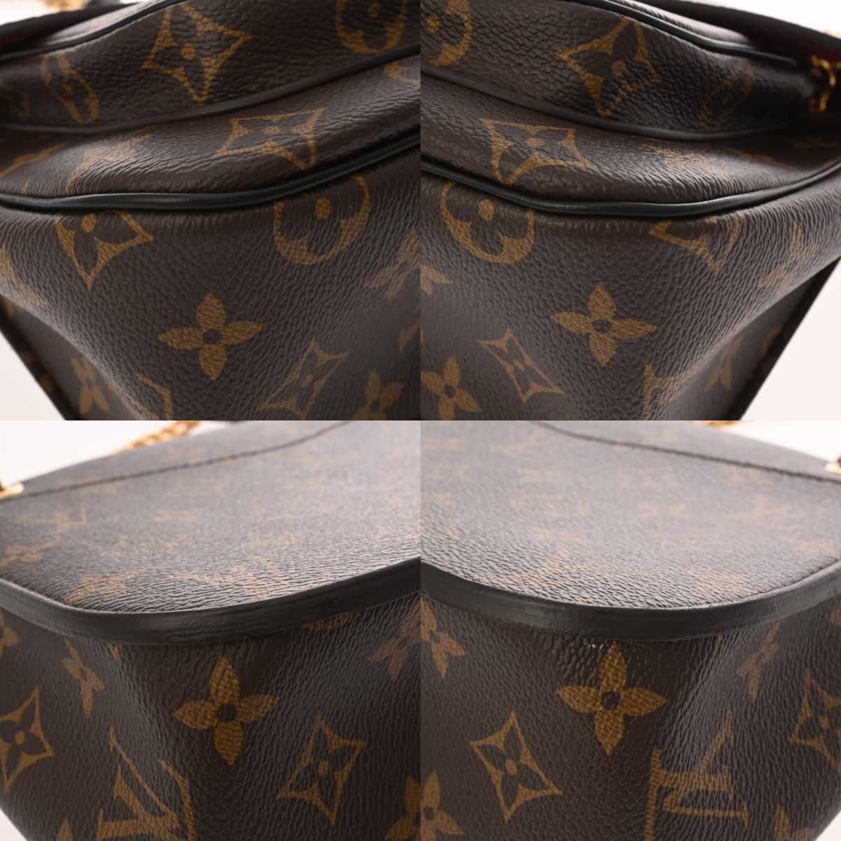 - 少しつぶれ、薄汚れ、スレ、ショルダーにクセ、金具にくすみ、スレが若干ございます。