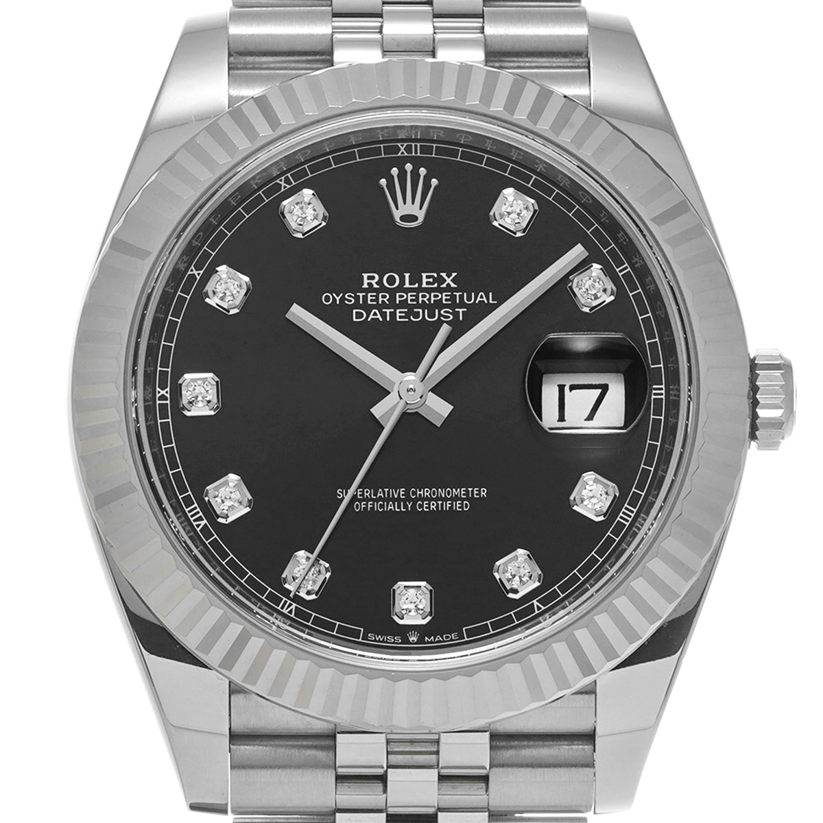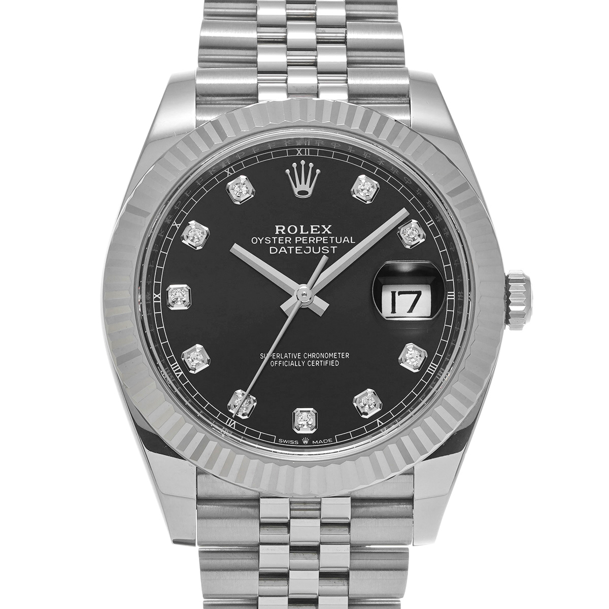 ロレックス デイトジャスト 41 126334G ブライトブラック/ダイヤモンド メンズ 時計 【中古】【wristwatch】