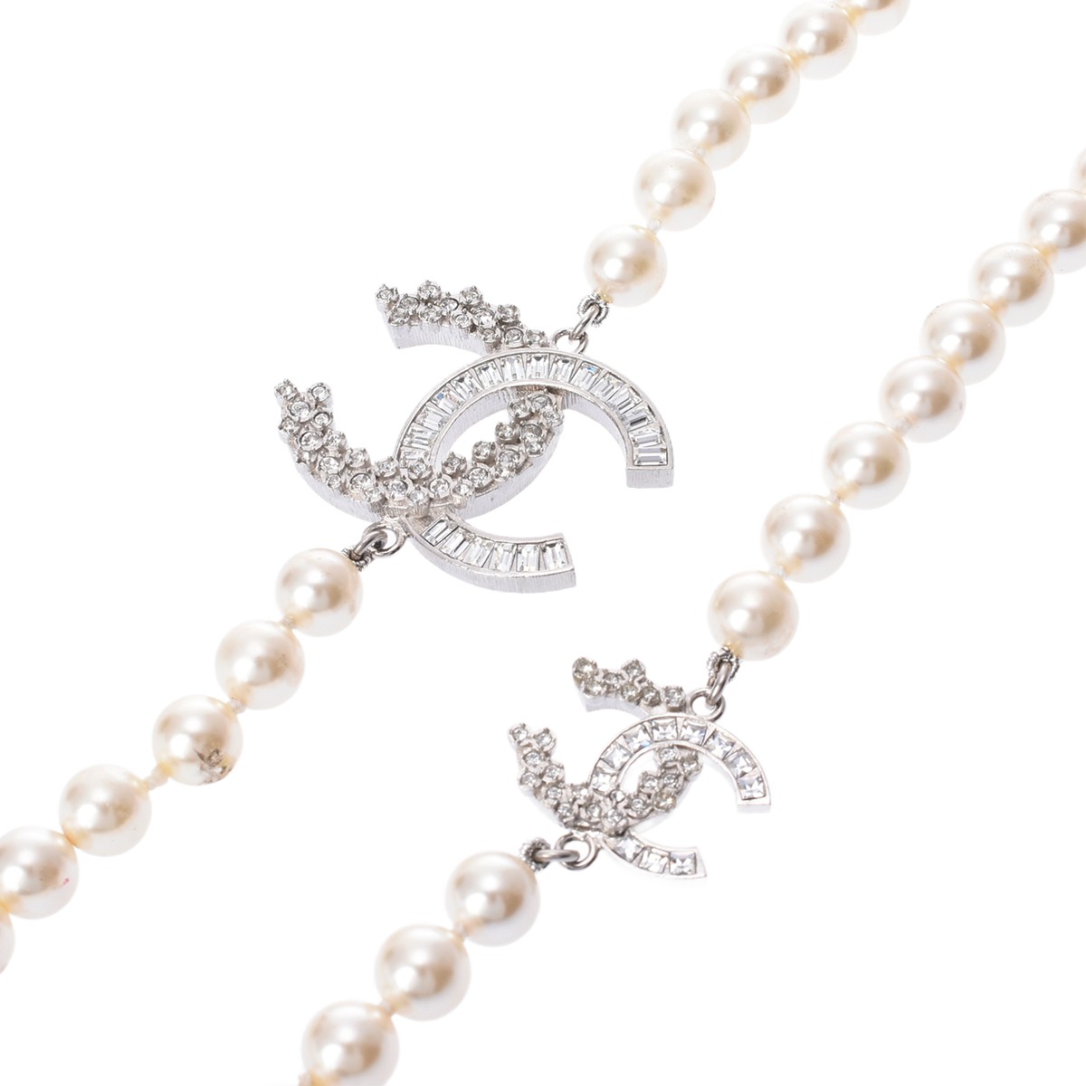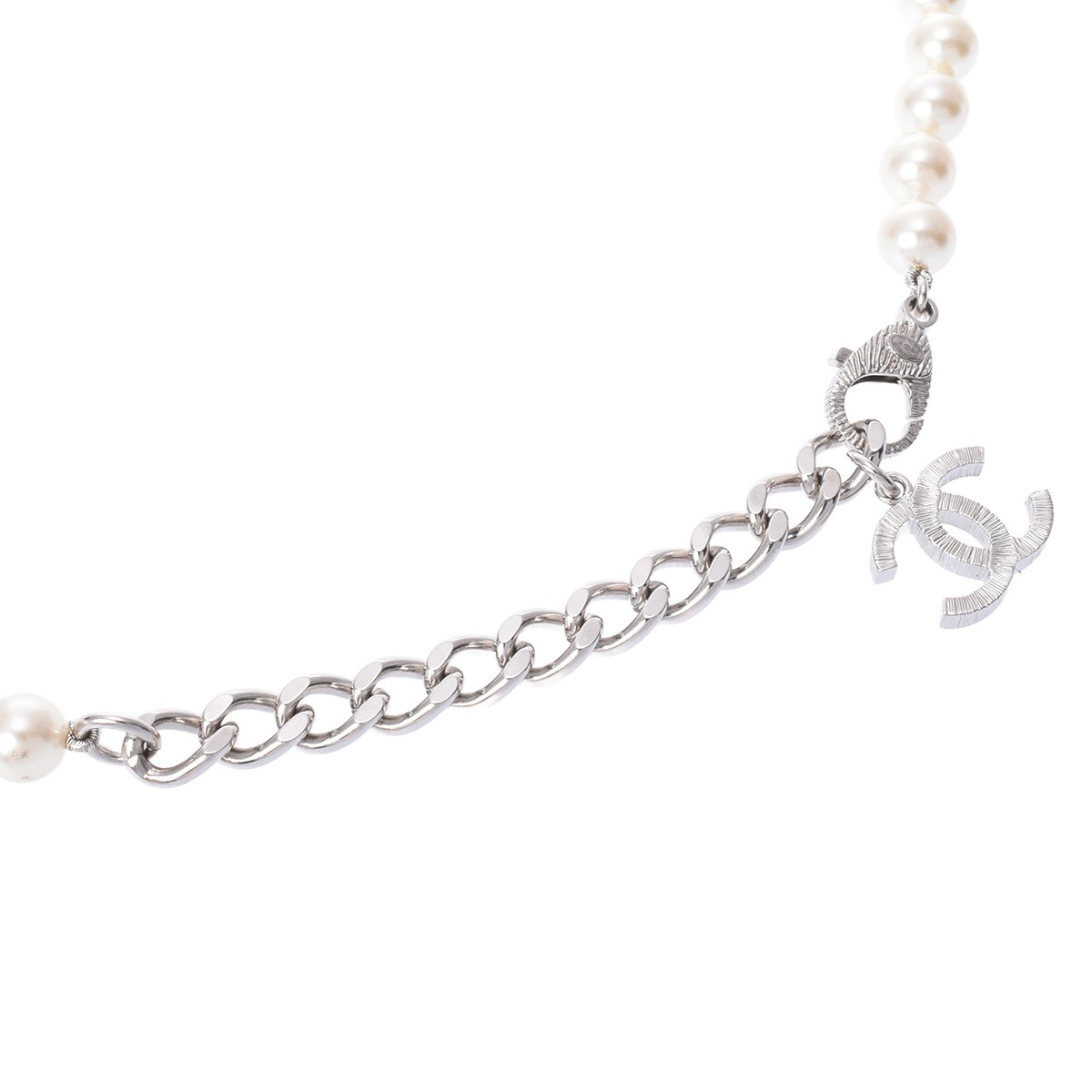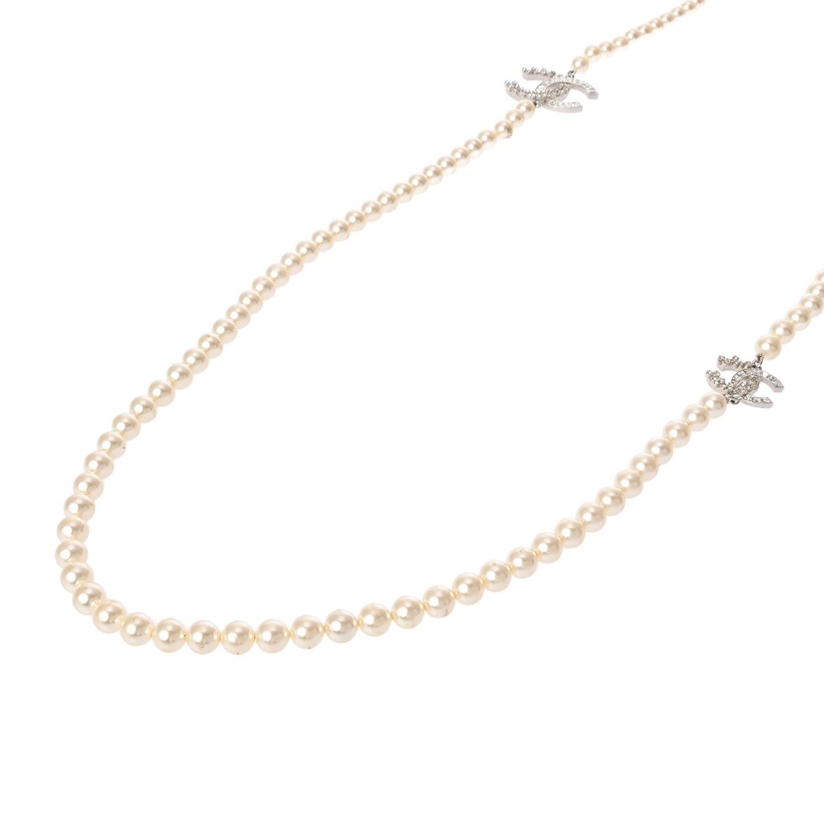 シャネル ロングネックレス シルバー/ホワイト メタル/ラインストーン/フェイクパール レディース ジュエリー 【中古】【jewelry】