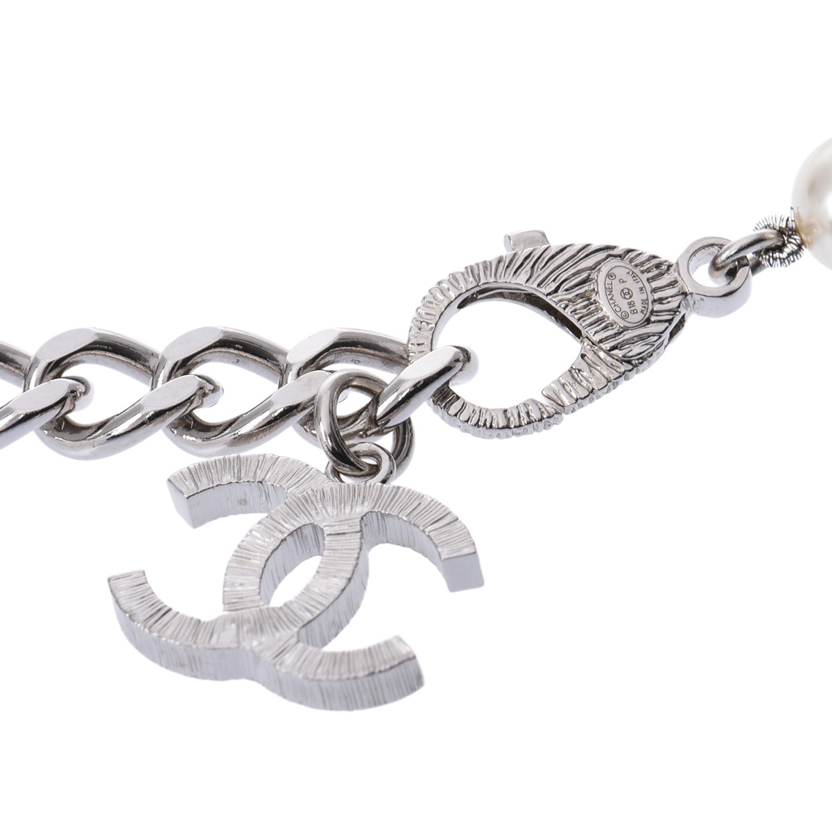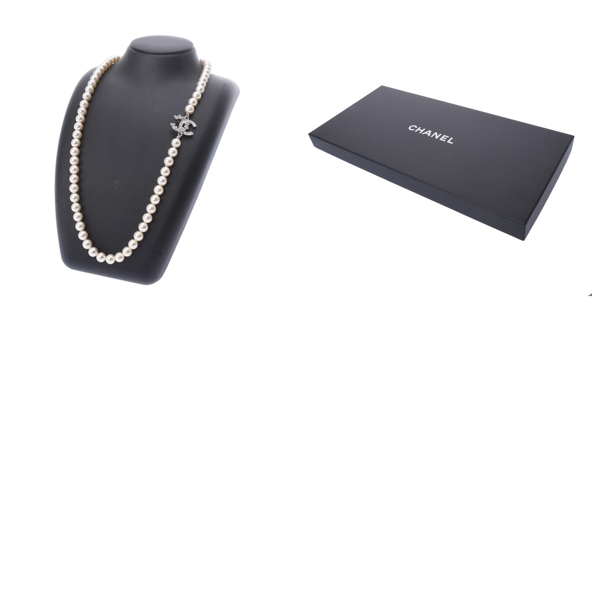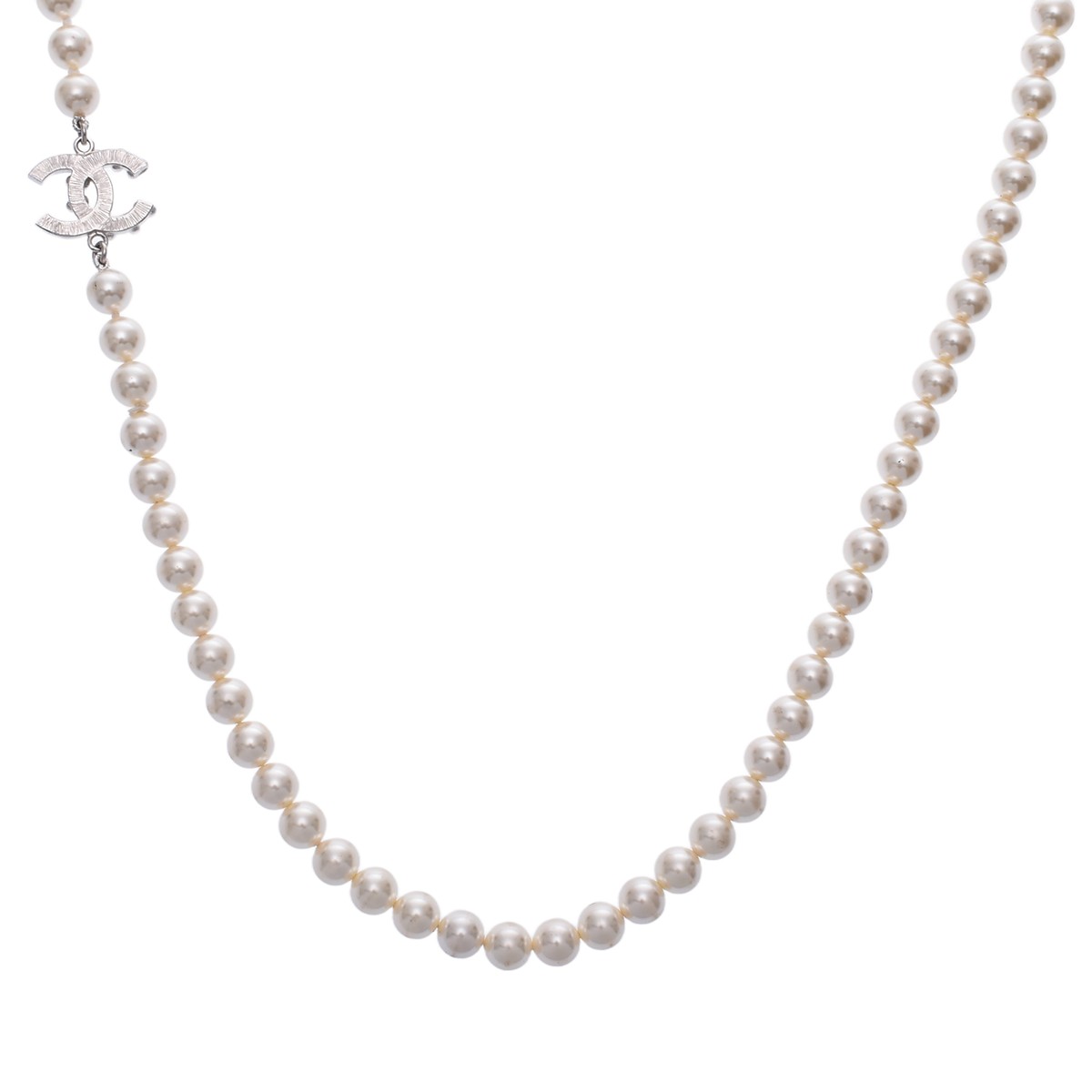 シャネル ロングネックレス シルバー/ホワイト メタル/ラインストーン/フェイクパール レディース ジュエリー 【中古】【jewelry】