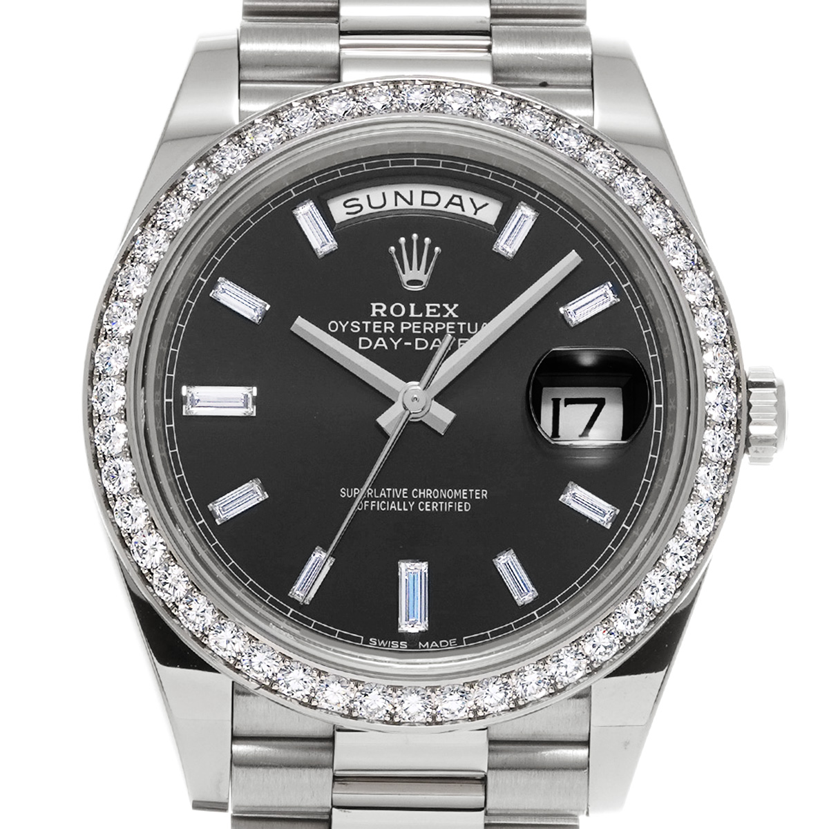 ロレックス デイデイト 40 228349RBR ブライトブラック/ダイヤモンド メンズ 時計 【中古】【wristwatch】