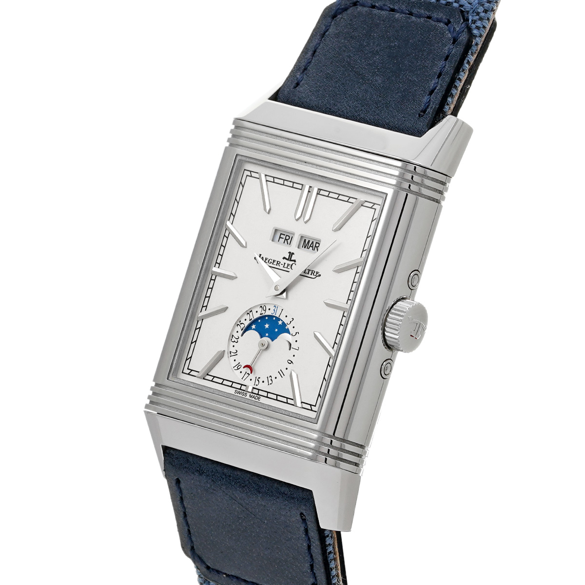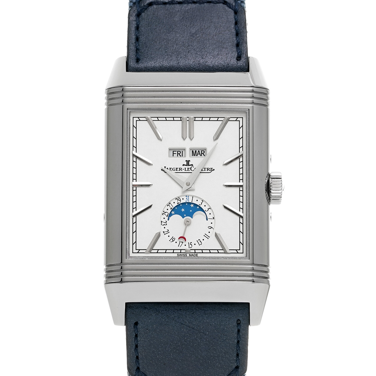 ジャガー ルクルト レベルソ トリビュート デュオカレンダー Q3918420 シルバー/ブルー メンズ 時計 【中古】【wristwatch】