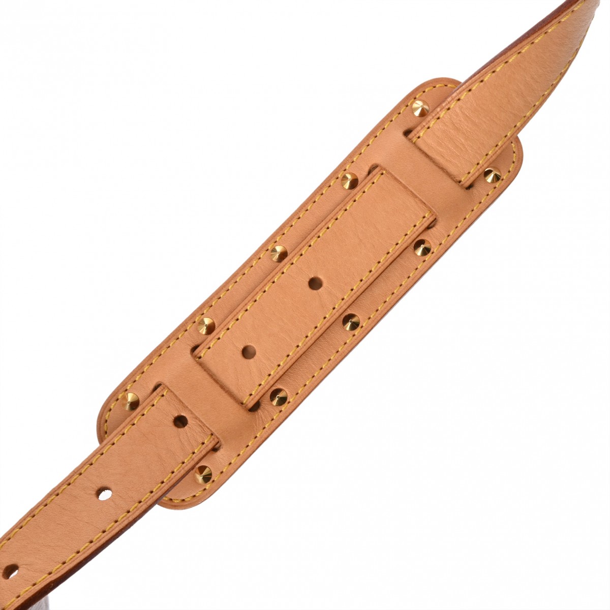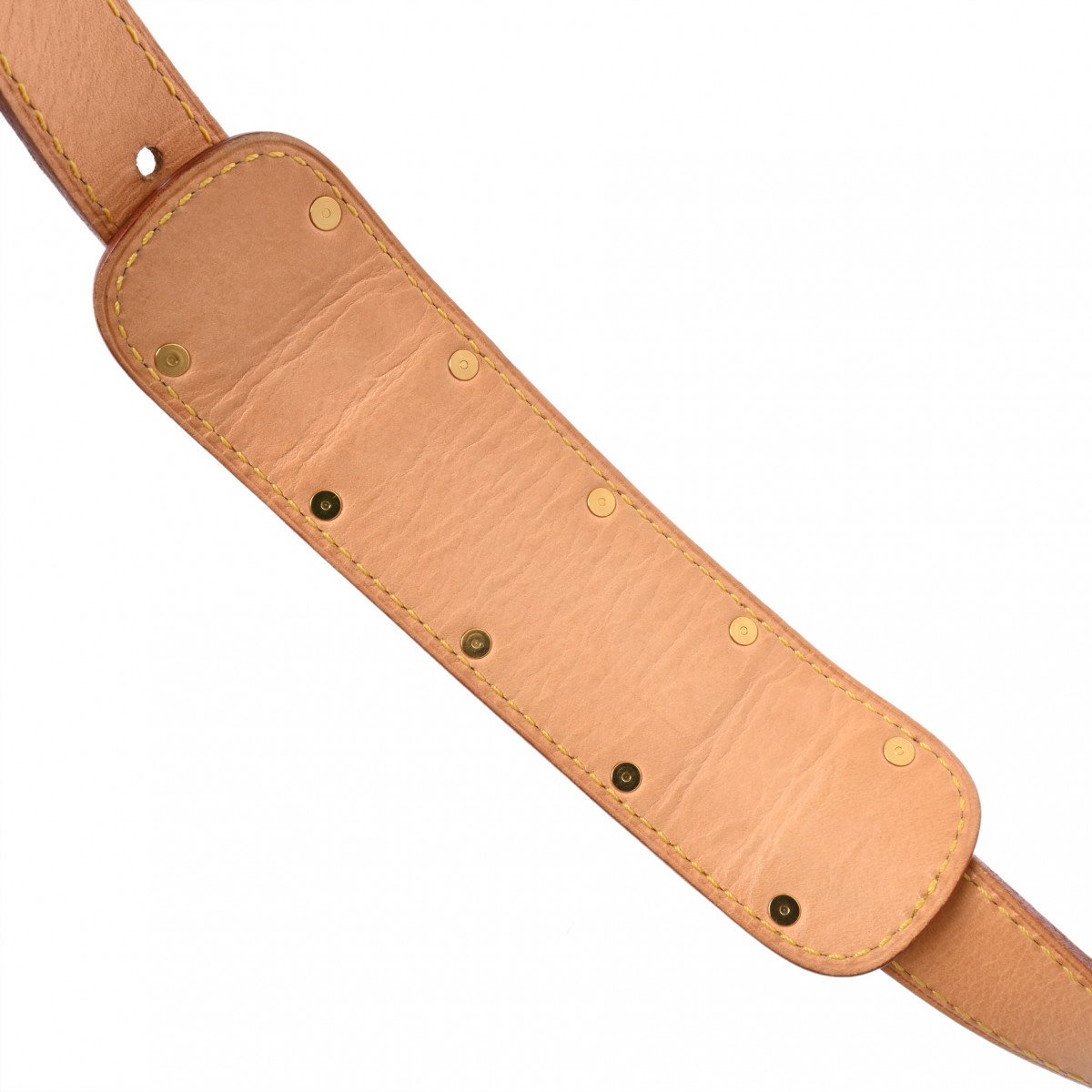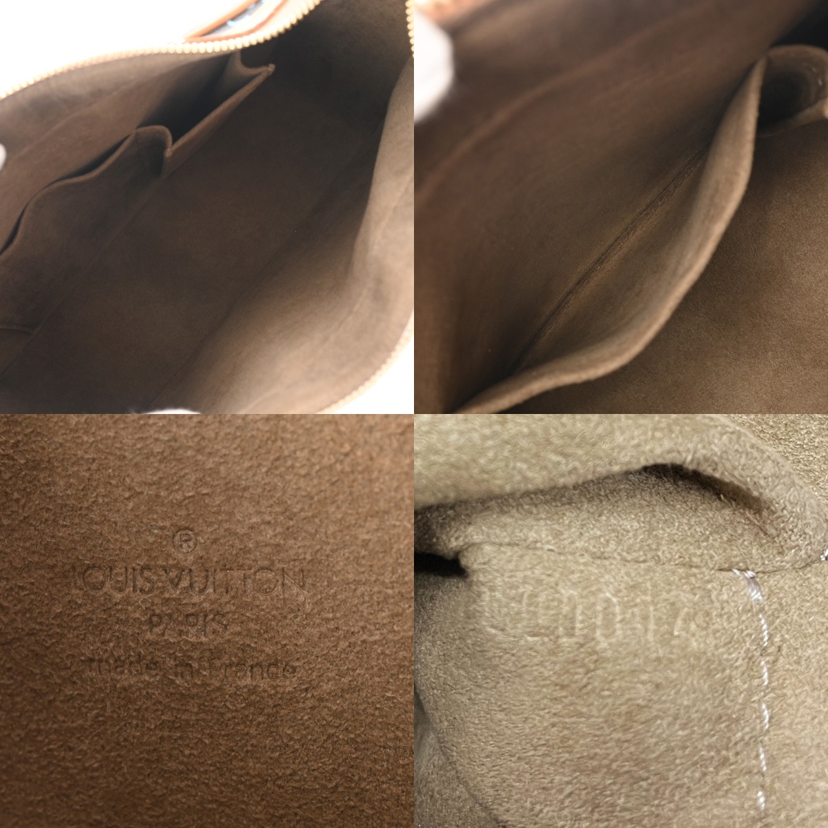 - 若干型崩れ、ヌメ革にヤケやシミ、スレ、ショルダーにクセ、シワ、金具にスリキズなど少々使用感がございます。