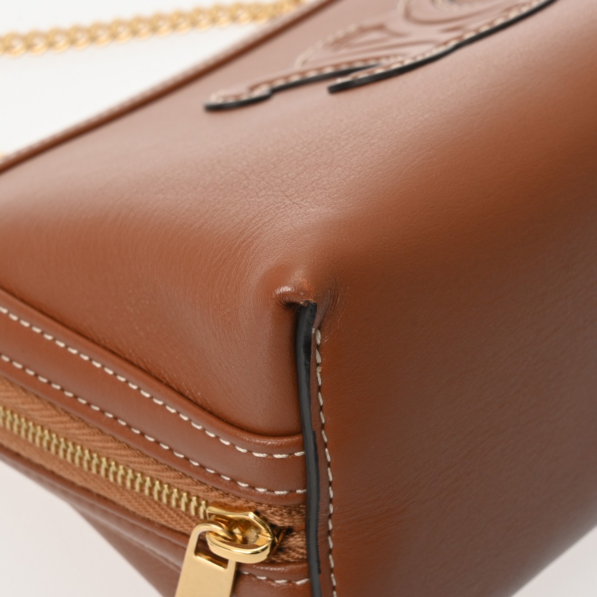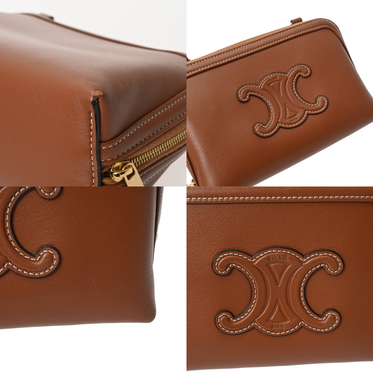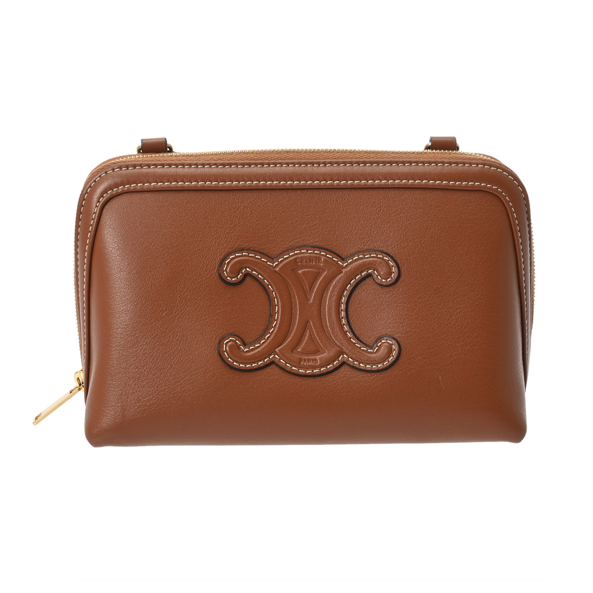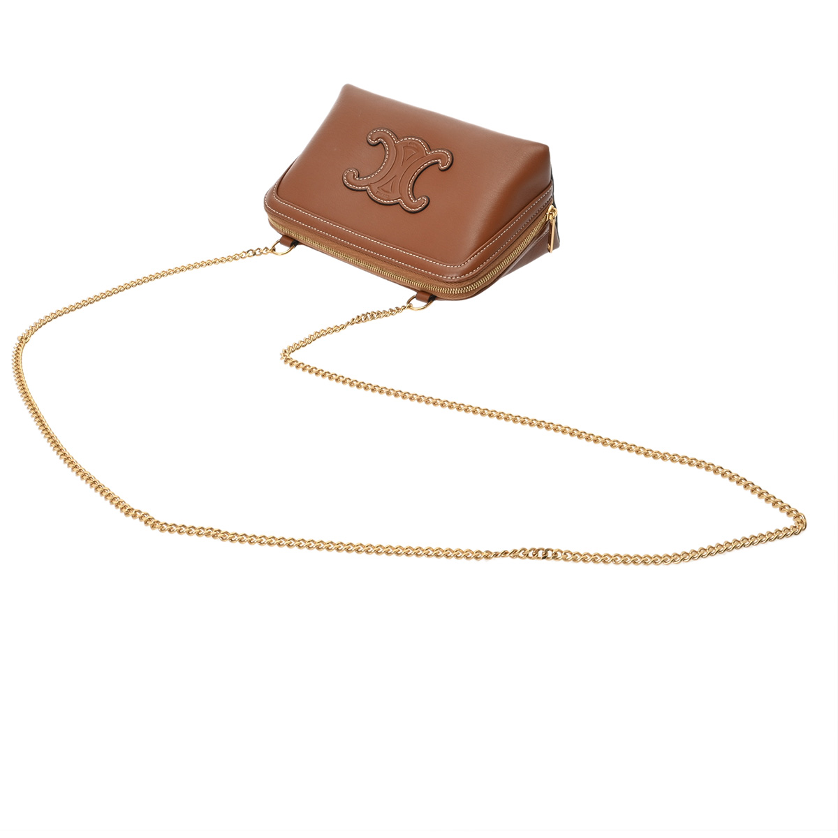 セリーヌ キュイルトリオンフ キュイルトリオンフ チェーンクラッチ タン 10E383DR8.04LU スムースカーフ レディース バッグ 【中古】【bag】