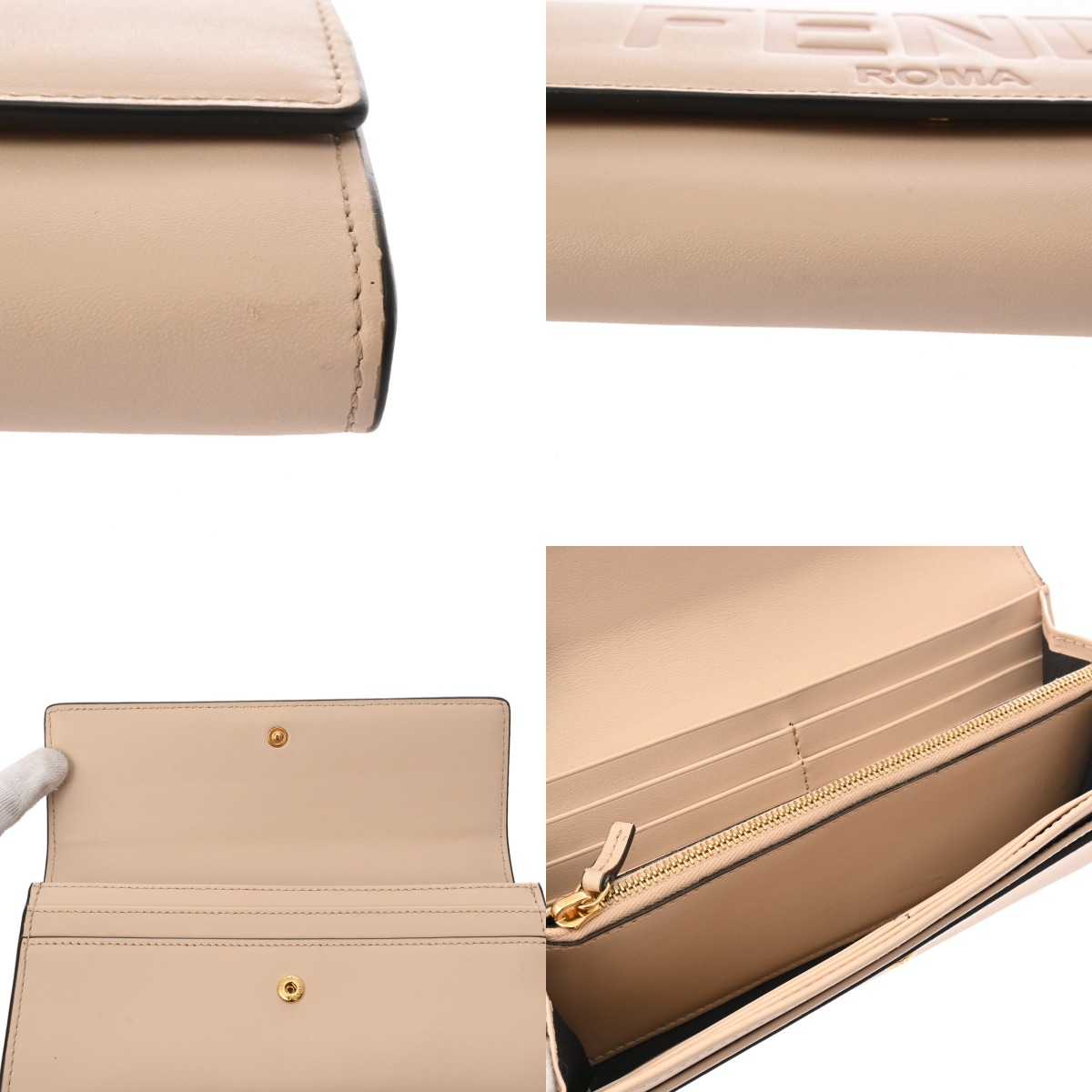 フェンディ ロゴ エンボス ベージュ 8M0251-AAYZ-219-2018 カーフレザー ユニセックス 財布 【中古】【purse】