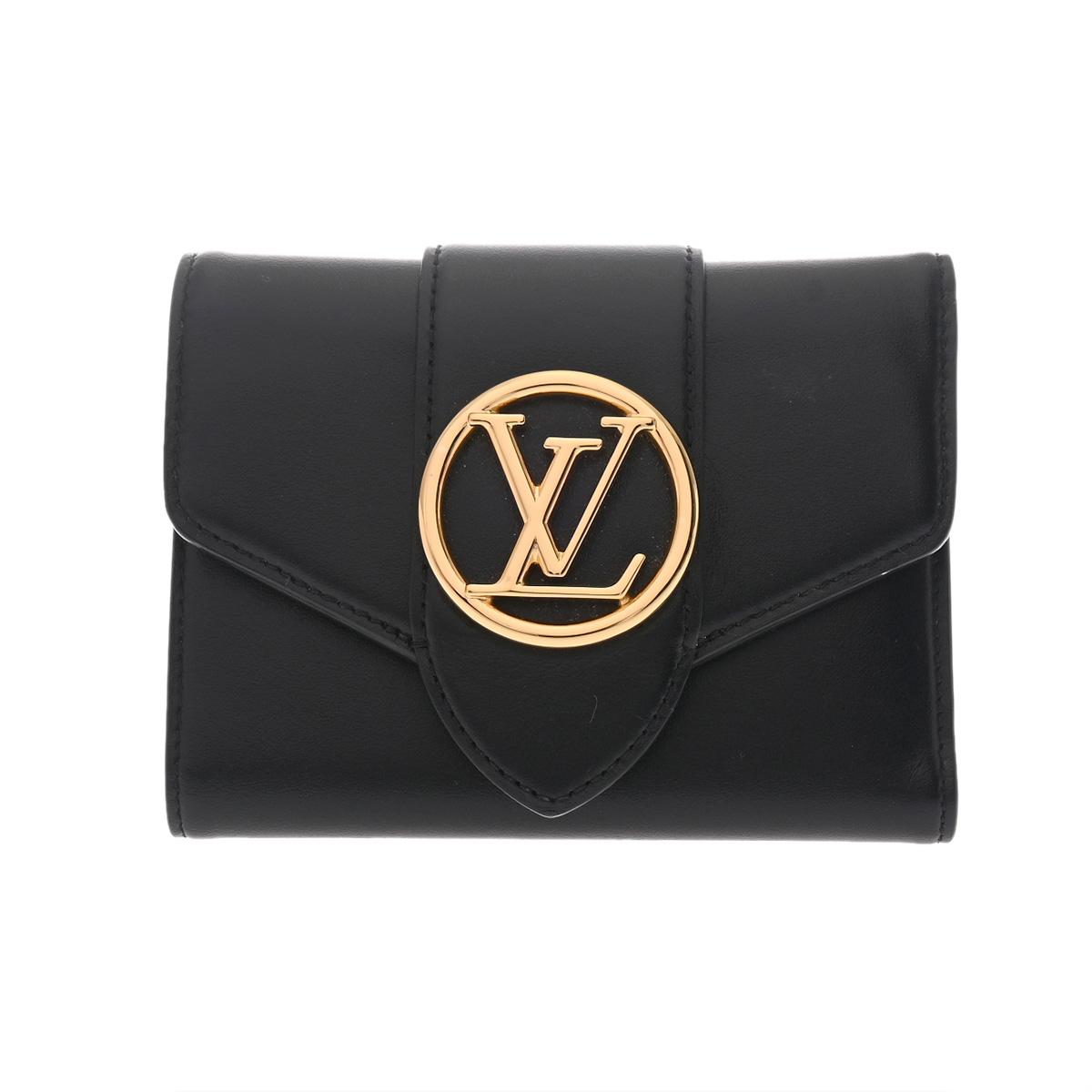 ルイ ヴィトン ポルトフォイユ LVポンヌフコンパクト ブラック M69175 カーフ レディース 財布 【中古】【purse】