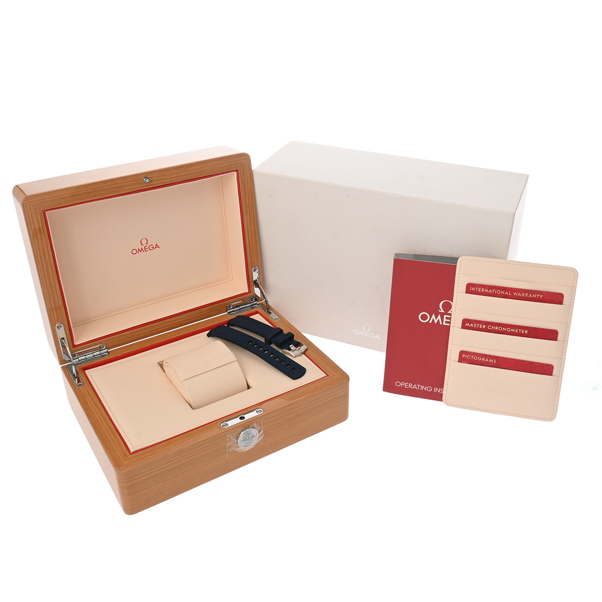 - メーカー保証書( 2019年5月国内購入) / 替えベルト( ラバー/ブルー) / メーカー箱(ダメージ)/冊子/ピクトグラム/クロノメーター証明書