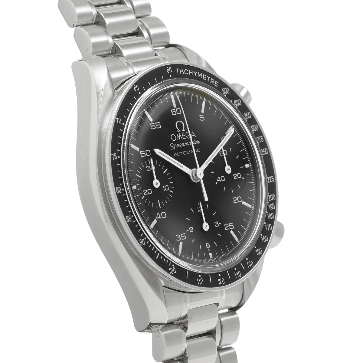 コメントこのスピードマスター リデュースドとも呼ばれるモデルは、オメガの代表的な時計であるスピードマスター プロフェッショナルのツールとして研ぎ澄まされた精悍さはそのままに、ケース径を39ミリに縮小して腕上での収まりを改善すると共に、自動巻きムーブメントの採用によって利便性を向上させることで、より多くの人々の日常に寄り添える時計を目指したものです。