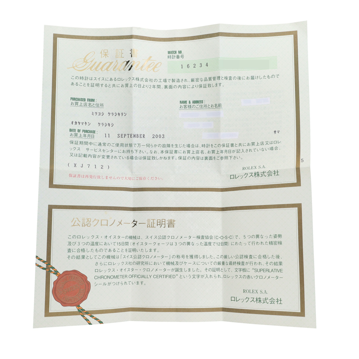 - メーカー保証書( 2003年9月国内購入)