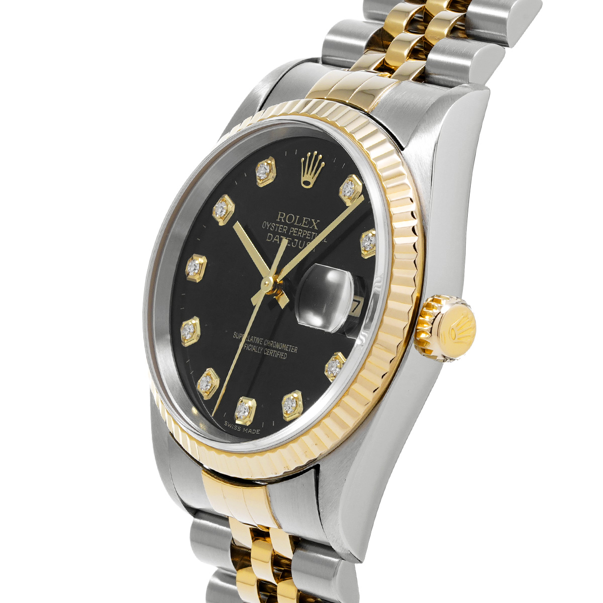 ロレックス デイトジャスト 16233G ブラック/ダイヤモンド メンズ 時計 【中古】【wristwatch】