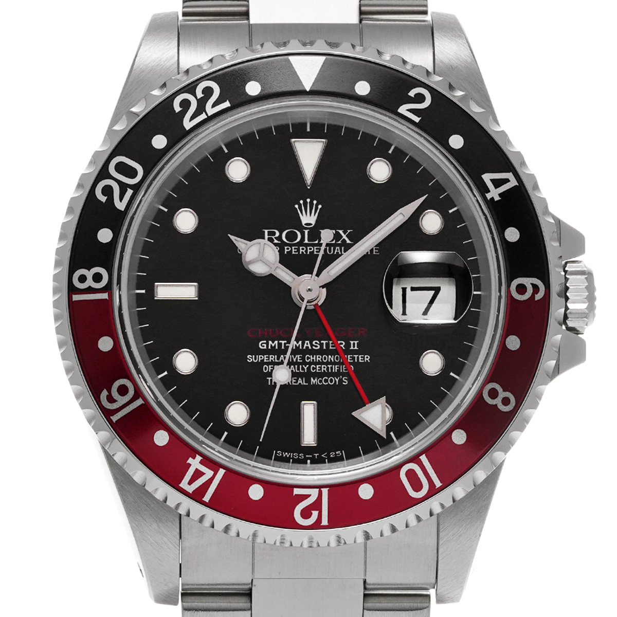 コメント従来の回転ベゼルと24時間針の組み合わせによる2タイムゾーンの表示に加えて、単独修正可能な短針を組み合わせることで同時に3つのタイムゾーンの時刻が表示可能となったGMTマスター II 。