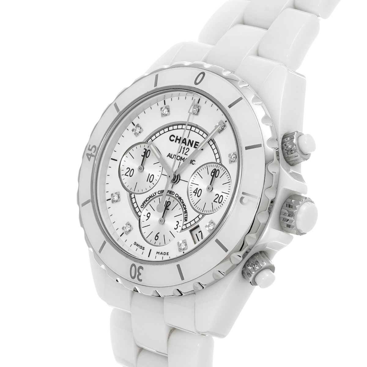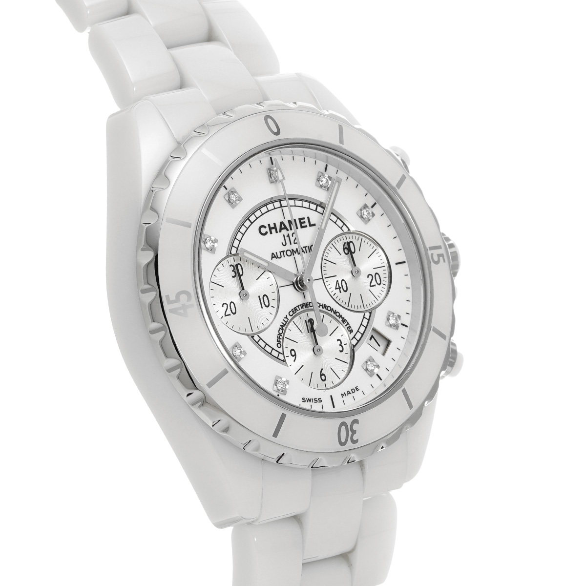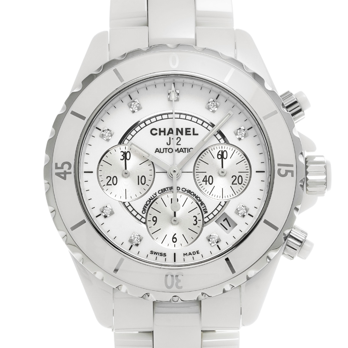 シャネル J12 クロノグラフ 41MM H2009 ホワイトラッカー/シルバー/ダイヤモンド メンズ 時計 【中古】【wristwatch】