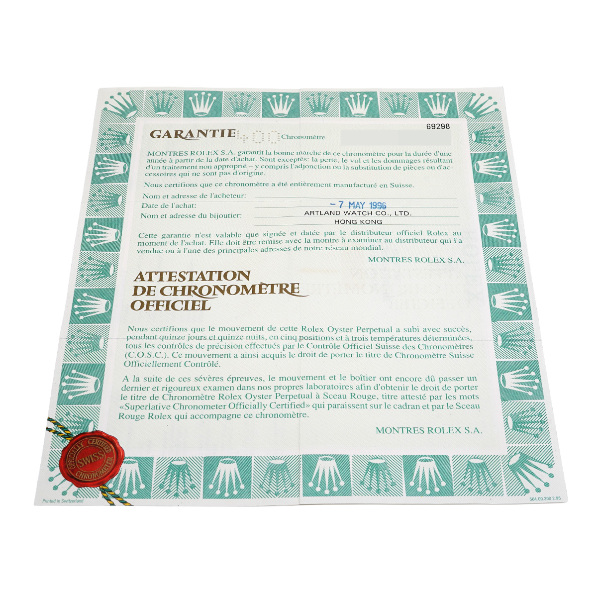 - メーカー保証書( 1996年5月海外購入)