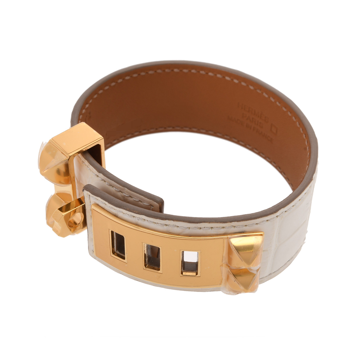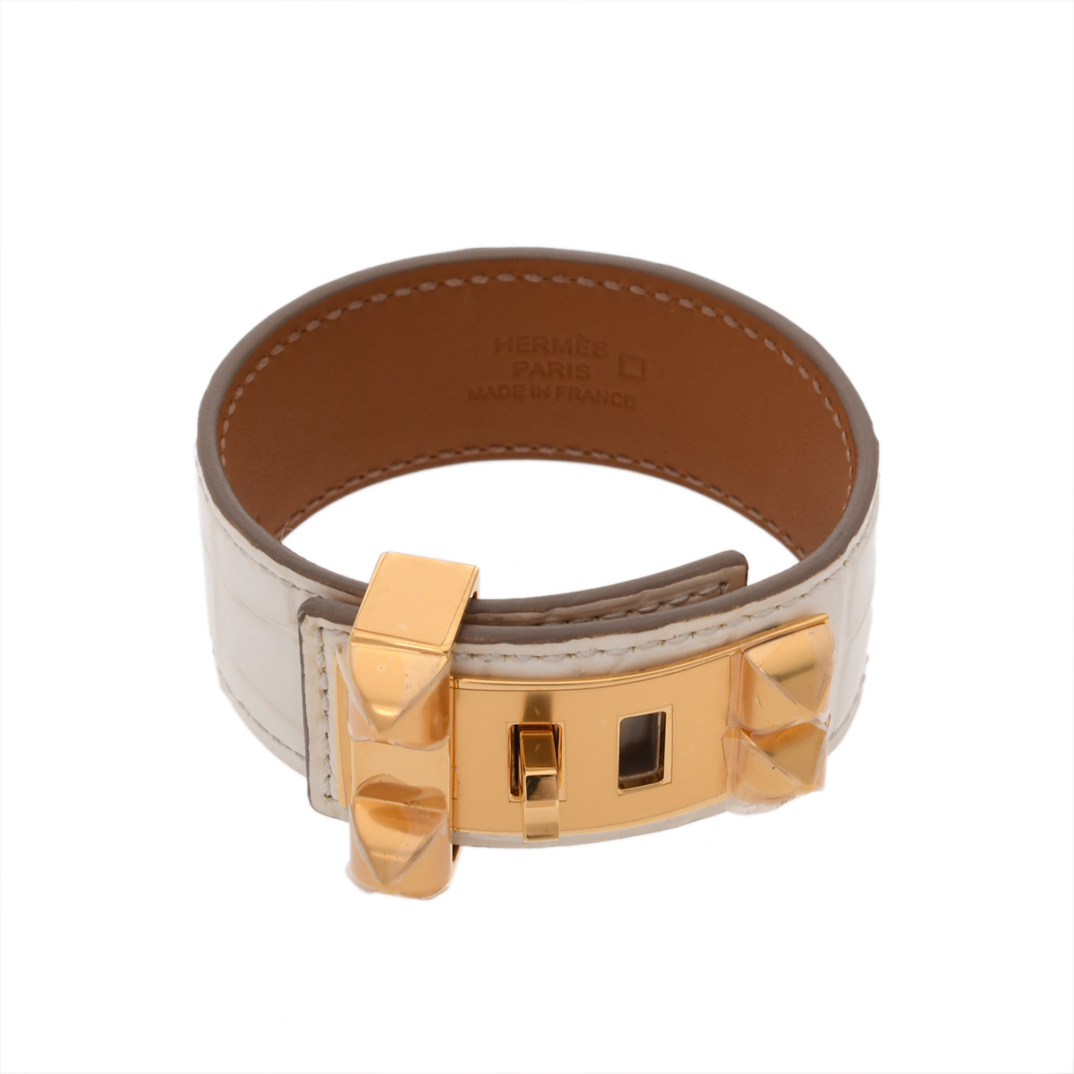 エルメス コリエドシアン ブレスレット 24 #T2 クレ/ゴールド金具 アリゲーターマット レディース ジュエリー 【中古】【jewelry】