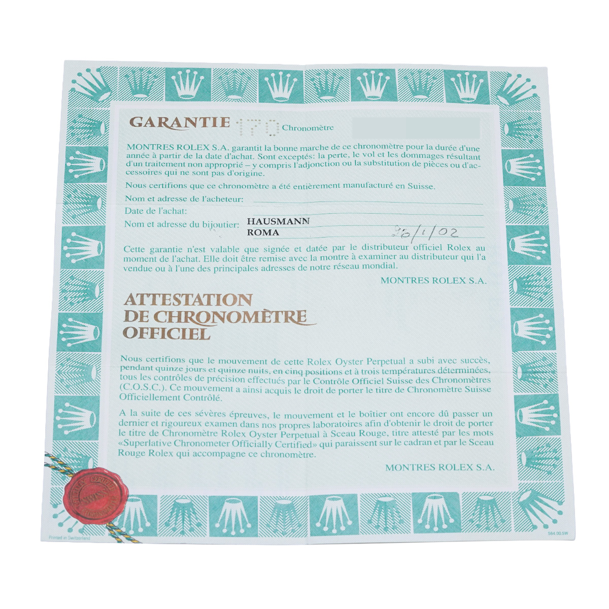 - 時計の当社保証