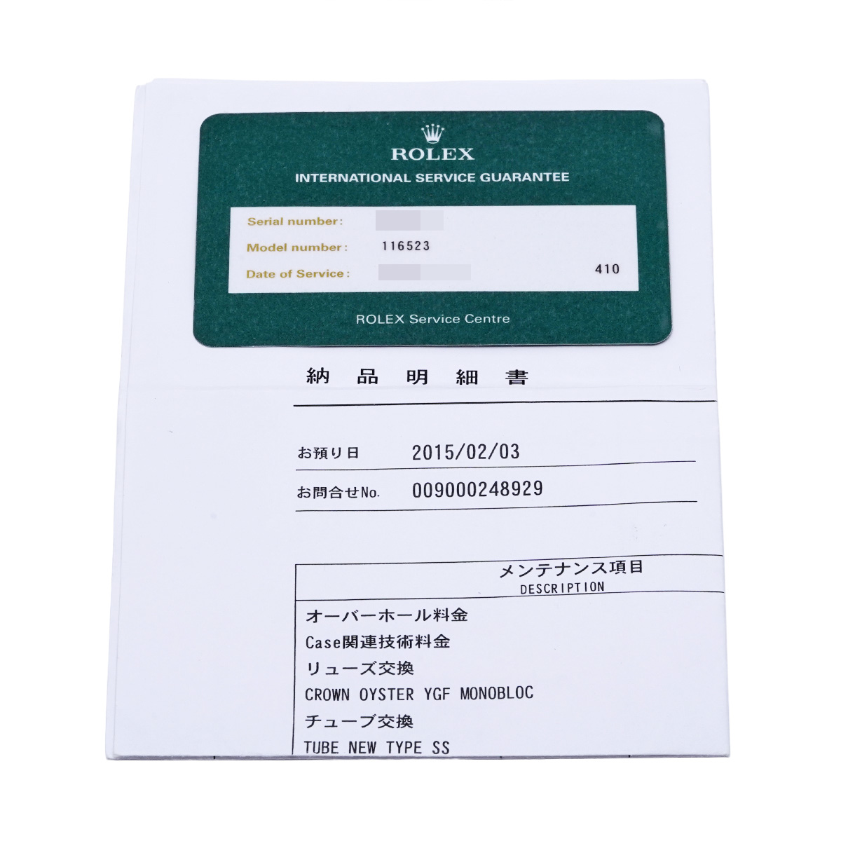 - メーカー箱(劣化) / 納品明細書(2015年3月オーバーホール他)国際サービス保証書(2015年3月オーバーホール)