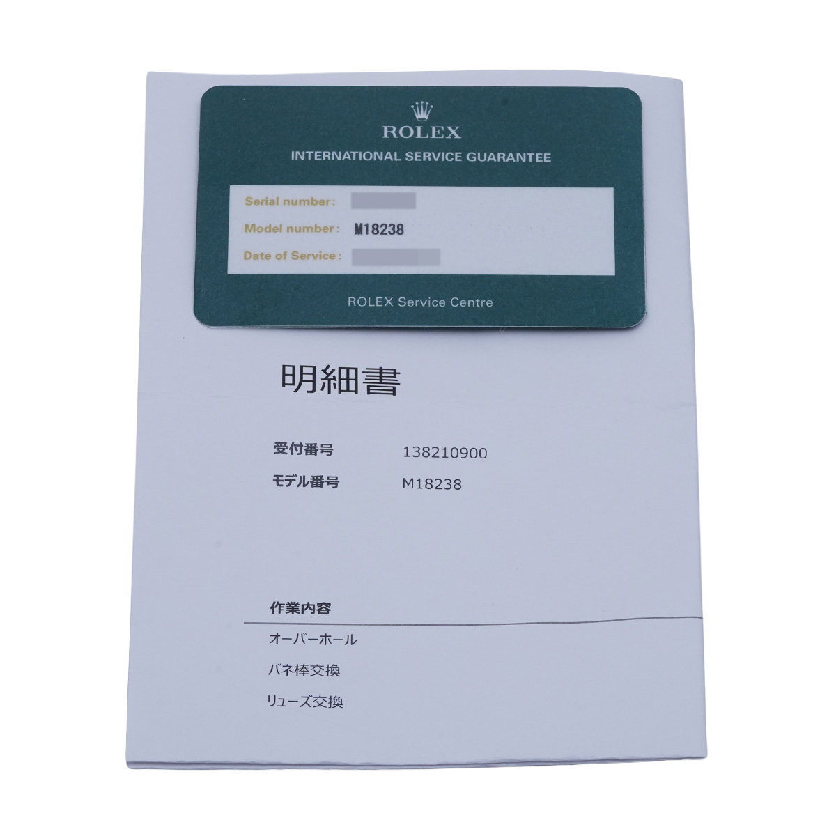 - メーカー箱(劣化)/冊子 / 国際サービス保証書(2021年12月オーバーホール) 明細書