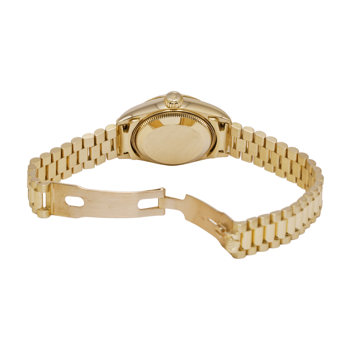 それから四半世紀の歳月を経て進化したこの世代のレディ デイトジャストの中でも、このゴールドモデルはもちろん特別な存在であり、最高峰の証であるプレジデントブレスレットがフィットされているほか、様々なジュエリーピースのベースモデルとして多く用いられています。 -