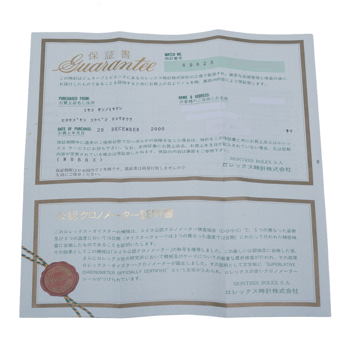 - 時計の当社保証