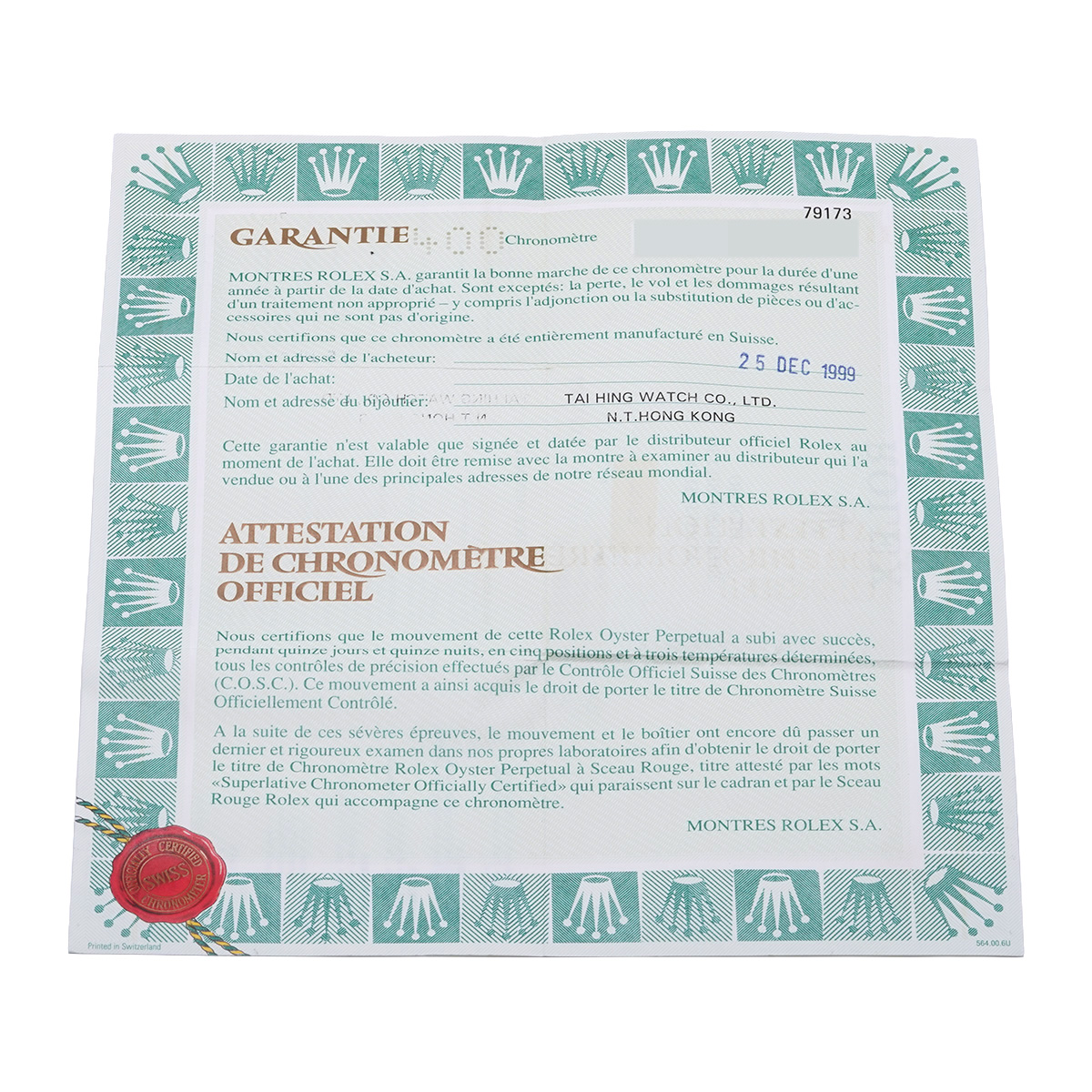 - 時計の当社保証
