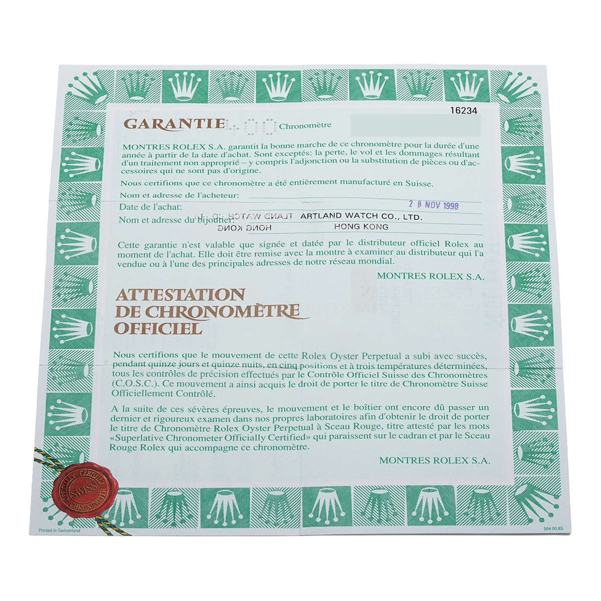 - メーカー保証書( 1998年11月海外購入) / メーカー箱/タグ