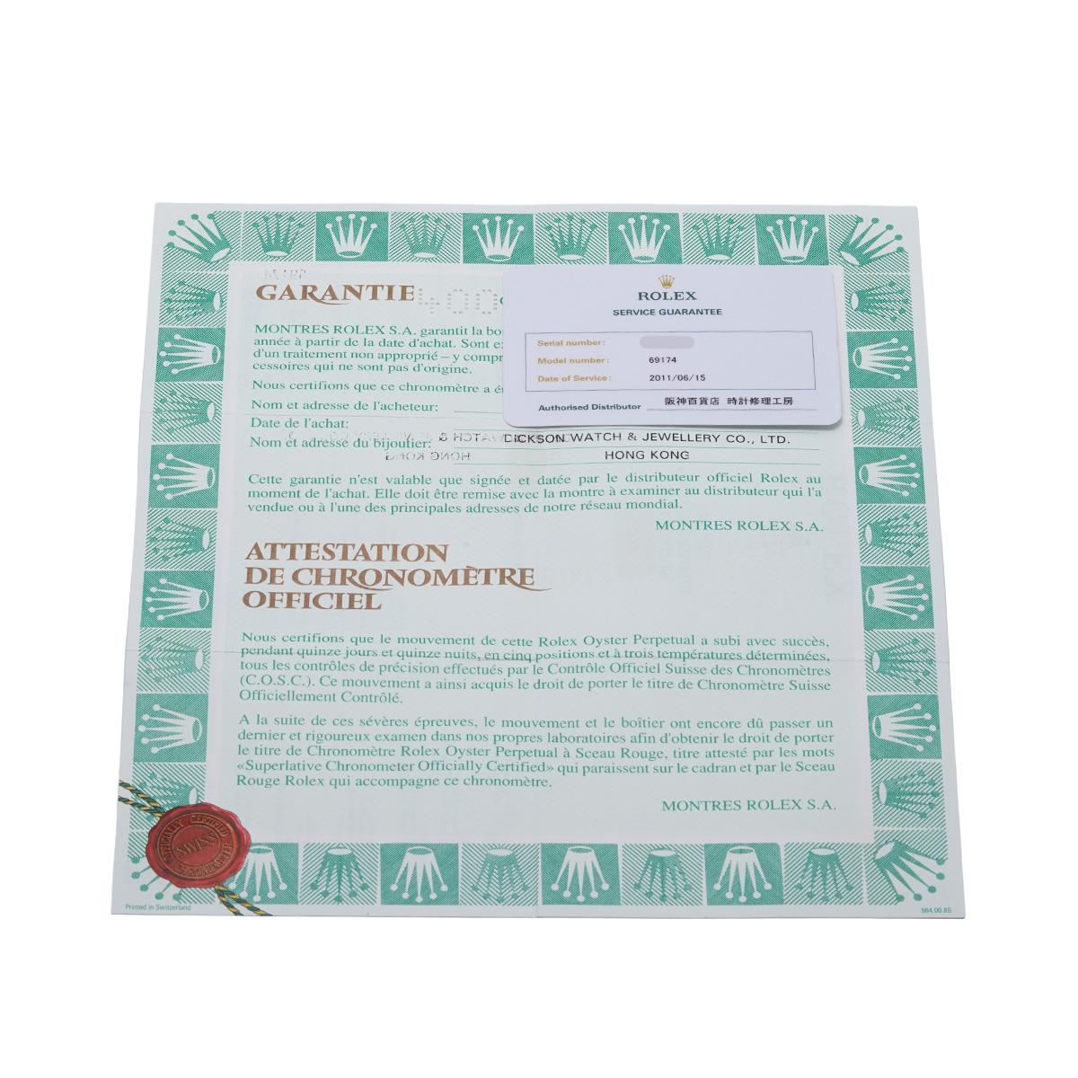 - メーカー保証書( 1998年4月海外購入) / サービス保証書(2011年6月オーバーホール)