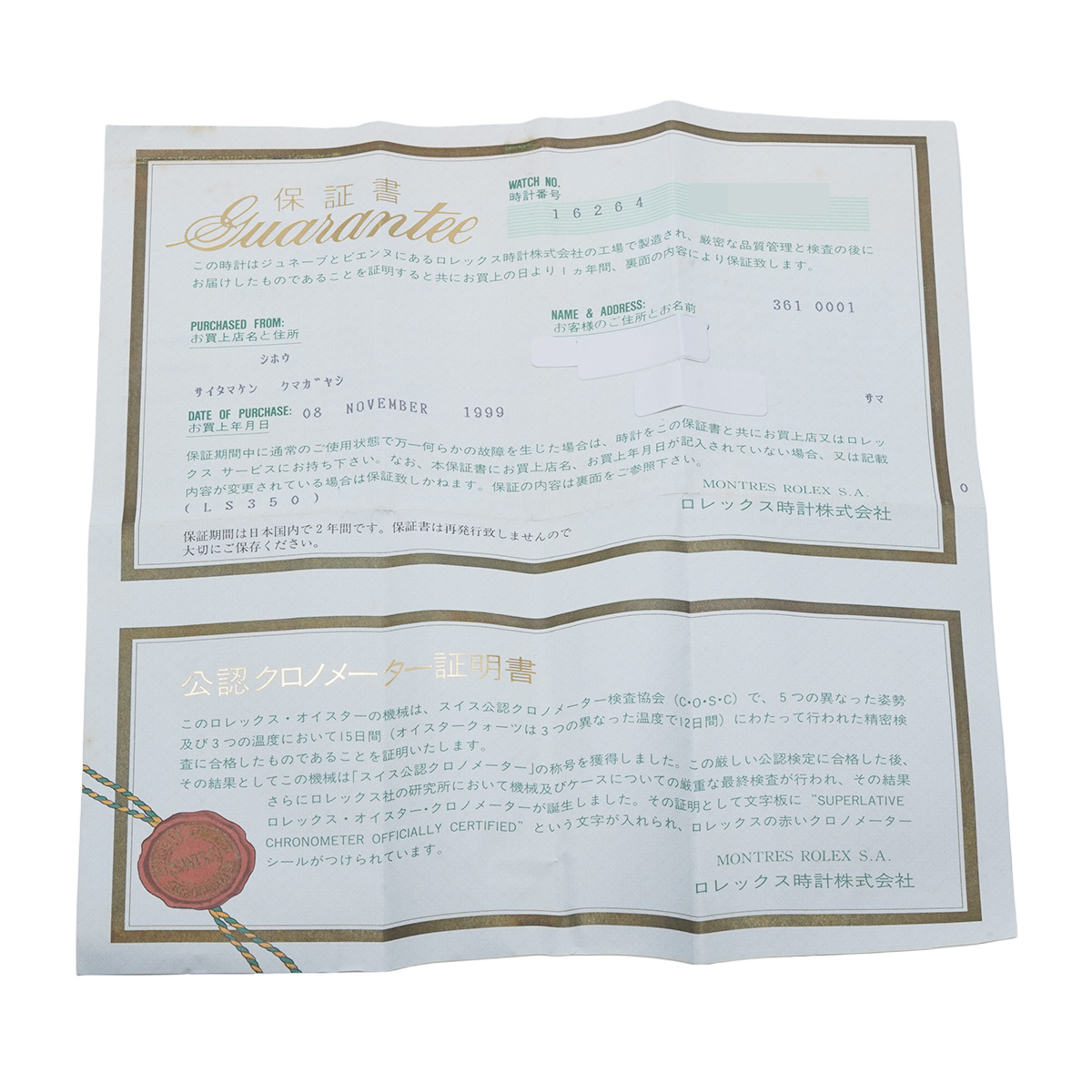 - メーカー保証書( 1999年11月国内購入) / メーカー箱/冊子