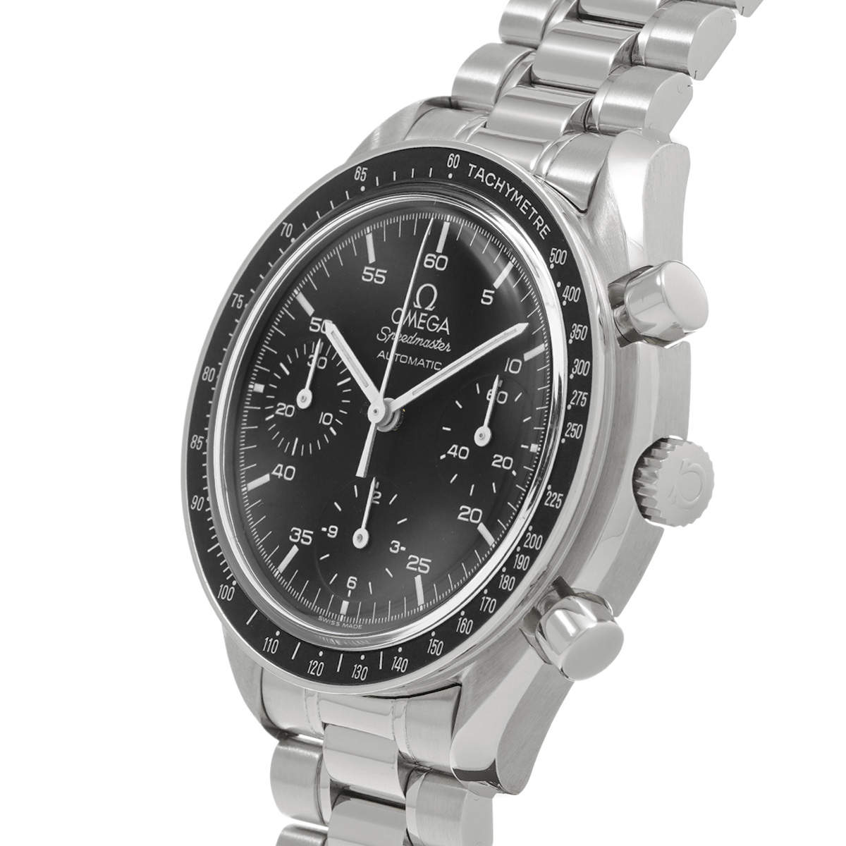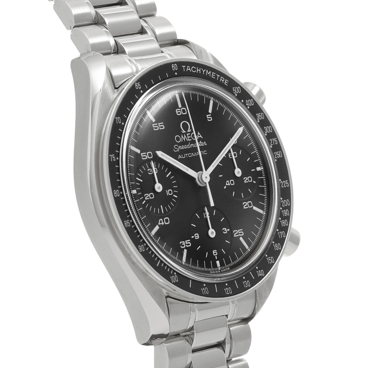 コメントこのスピードマスター リデュースドとも呼ばれるモデルは、オメガの代表的な時計であるスピードマスター プロフェッショナルのツールとして研ぎ澄まされた精悍さはそのままに、ケース径を39ミリに縮小して腕上での収まりを改善すると共に、自動巻きムーブメントの採用によって利便性を向上させることで、より多くの人々の日常に寄り添える時計を目指したものです。
