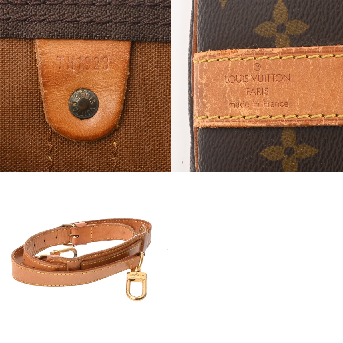 薄汚れ、スレや毛羽立ち、ヌメ革にヤケ、金具に緑青がございます。