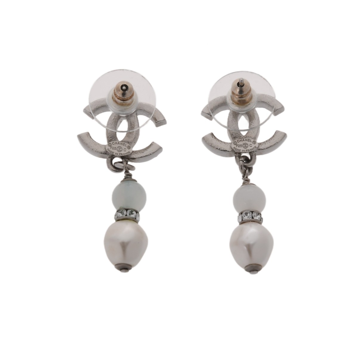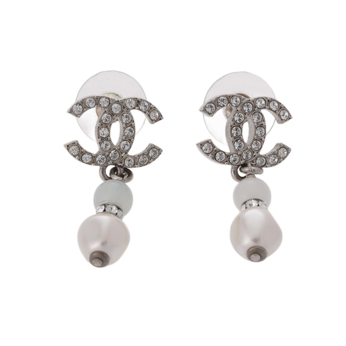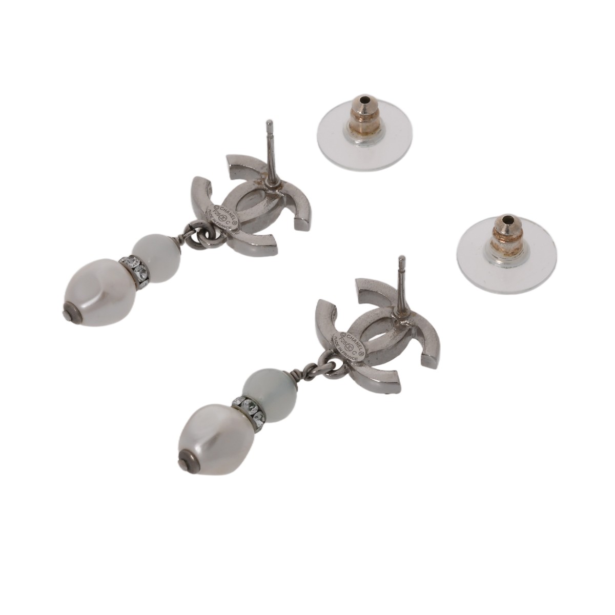 シャネル ピアス シルバー/ホワイト メタル/メタル/レジンパール/ストラス レディース ジュエリー 【中古】【jewelry】