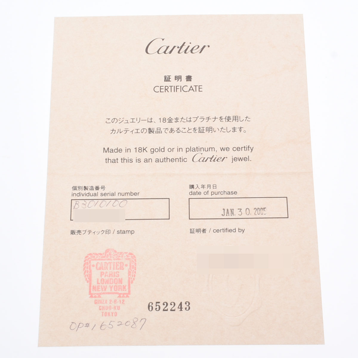 - メーカー保証書( 2005年1月国内購入) / 内箱