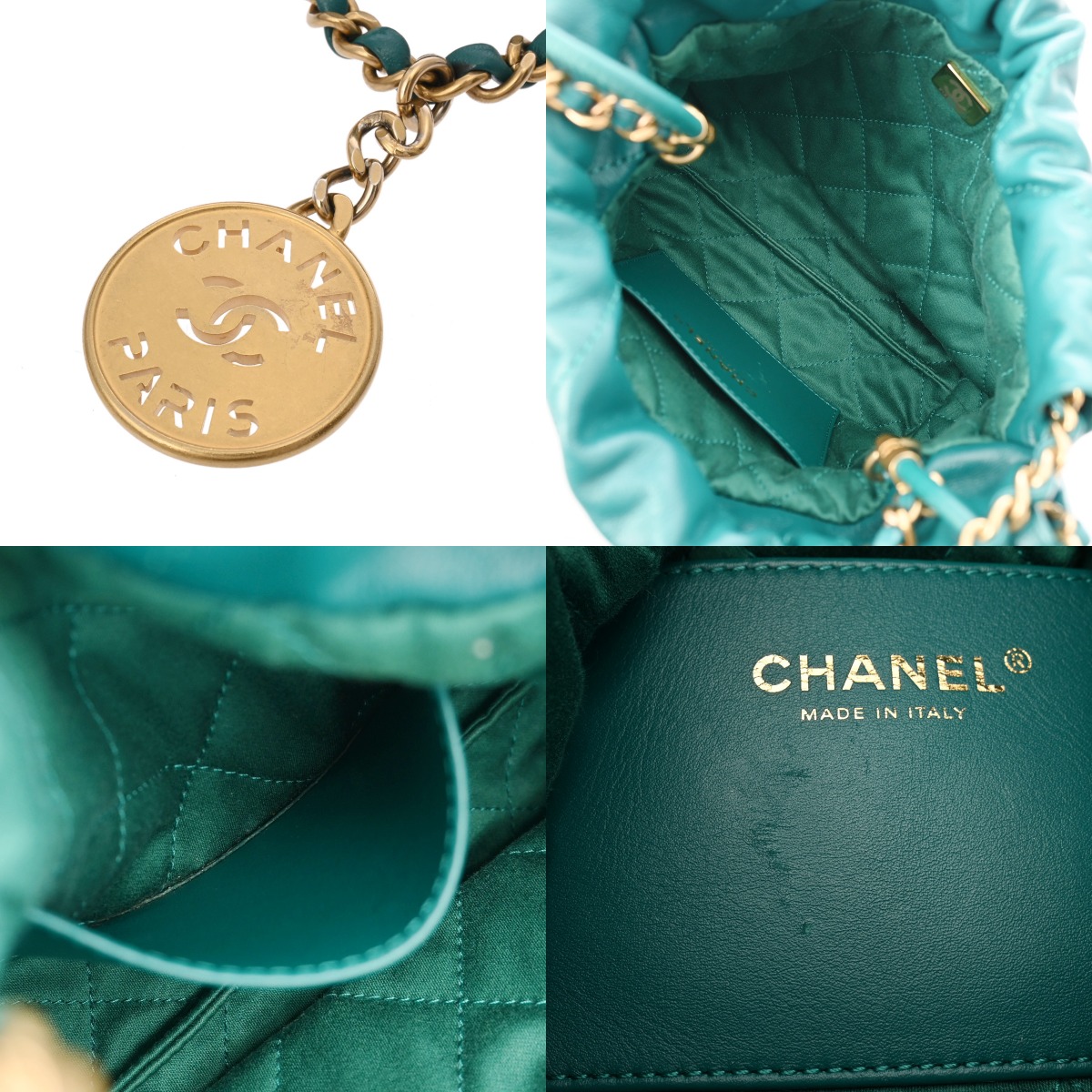 シャネル ミニ ハンドバッグ CHANEL22 グリーン AS3980 シャイニーカーフスキン レディース バッグ 【中古】【bag】
