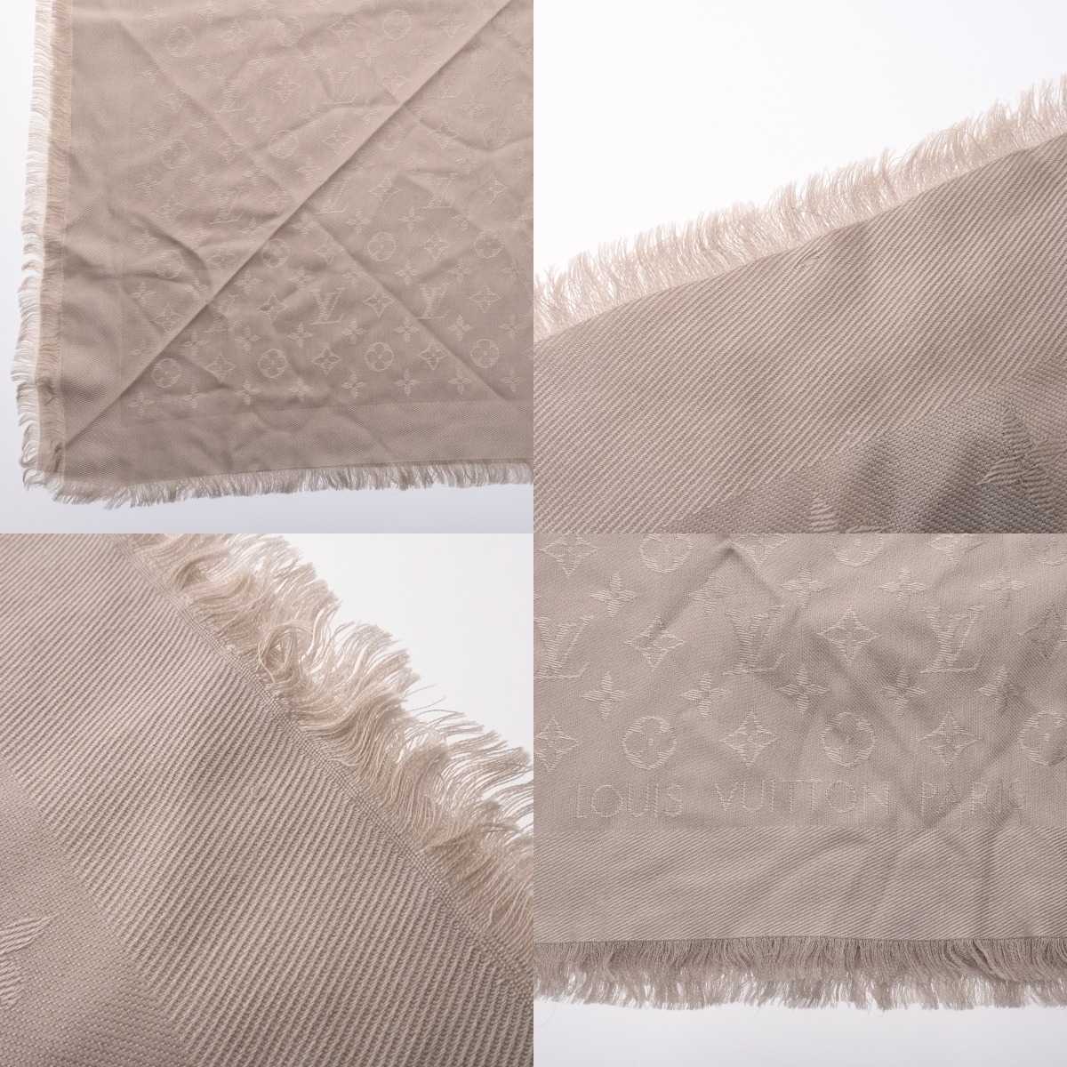 ルイ ヴィトン モノグラム ショール グレージュ M71336 シルク60%/ウール40% レディース 【中古】【other】