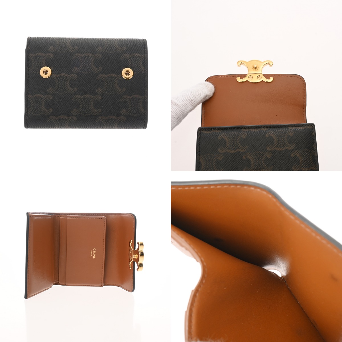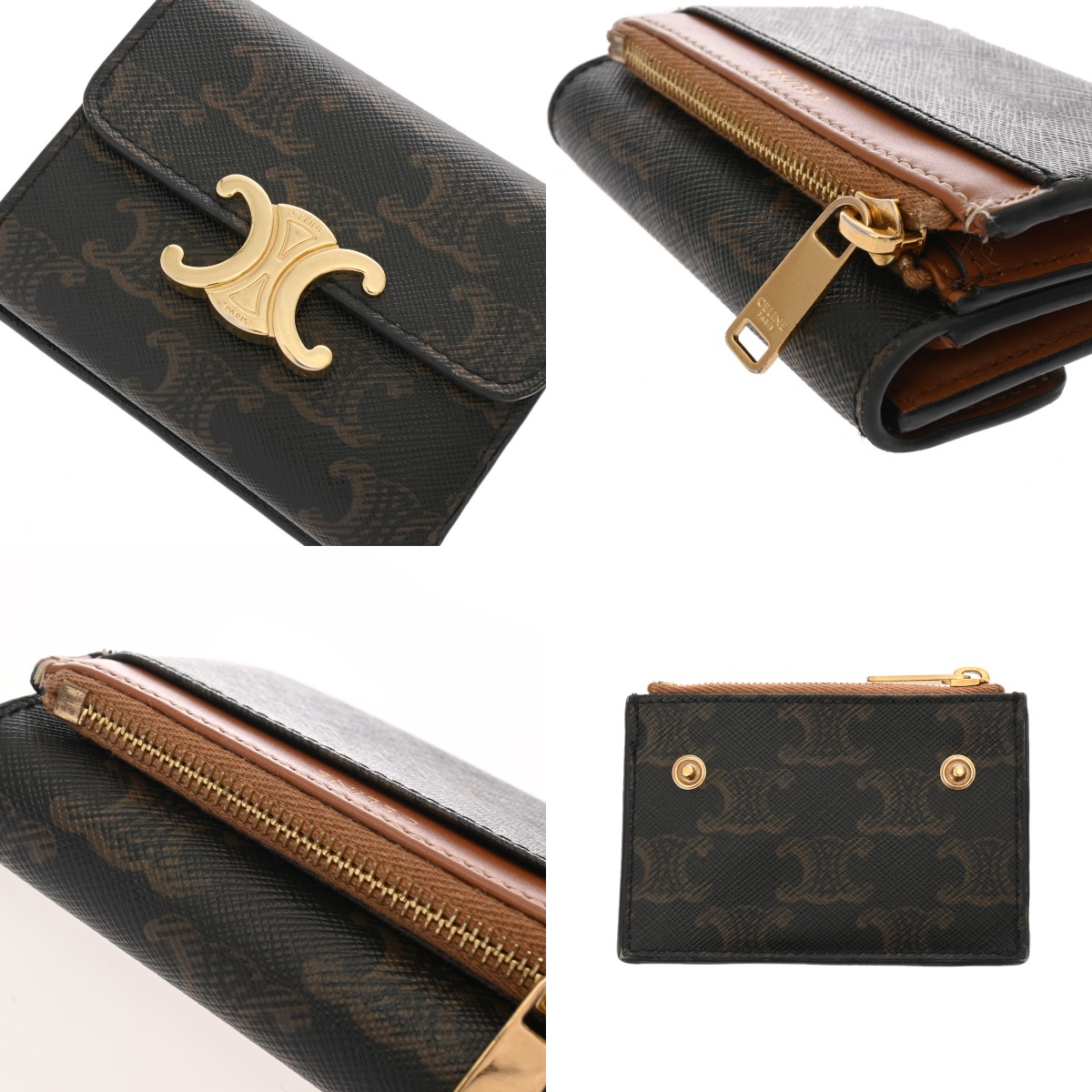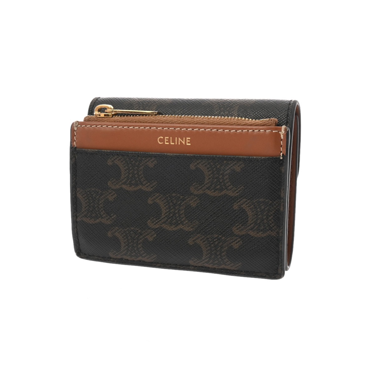 セリーヌ トリオンフ コインケース付き コンパクトウォレット タン 10R652DS3.04LU トリオンフキャンバス/カーフ レディース 財布 【中古】【purse】