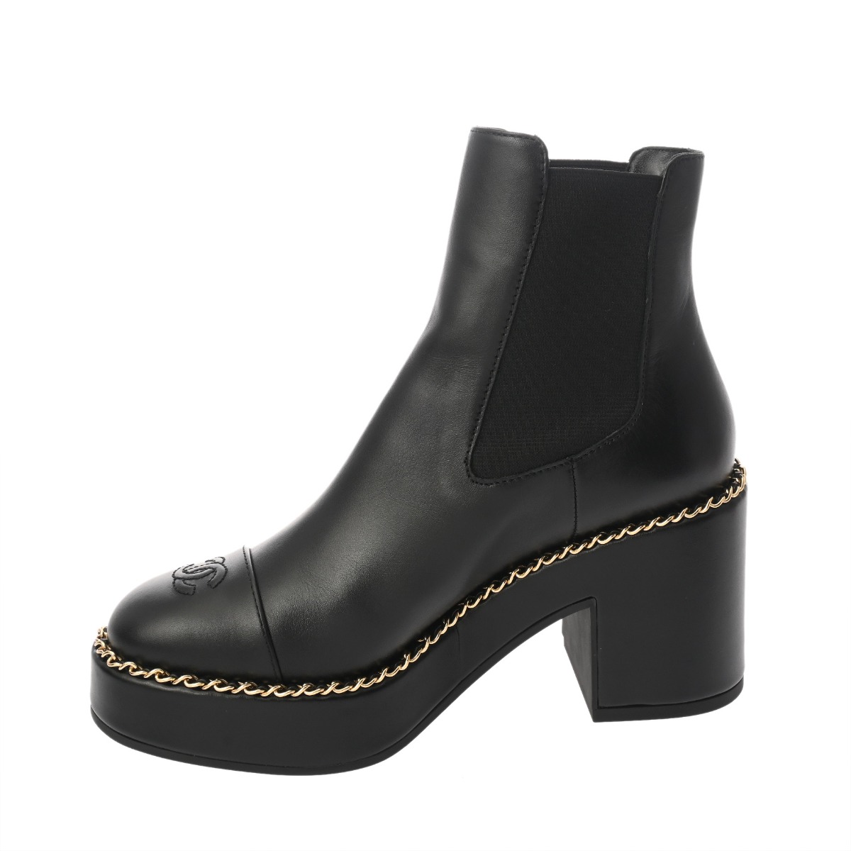 シャネル チェルシーブーツ #37 ブラック G46706 レザー/レザー レディース 靴 【中古】【other】