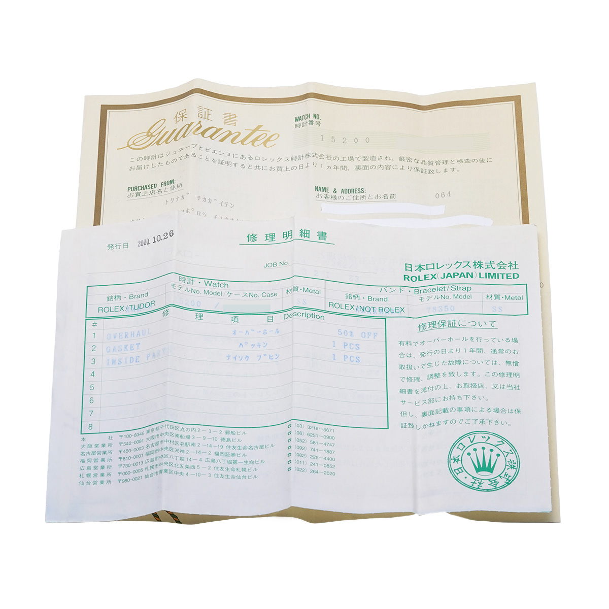 - メーカー保証書( 1994年8月国内購入) / メーカー箱 / 修理明細書(2000年10月オーバーホール他)