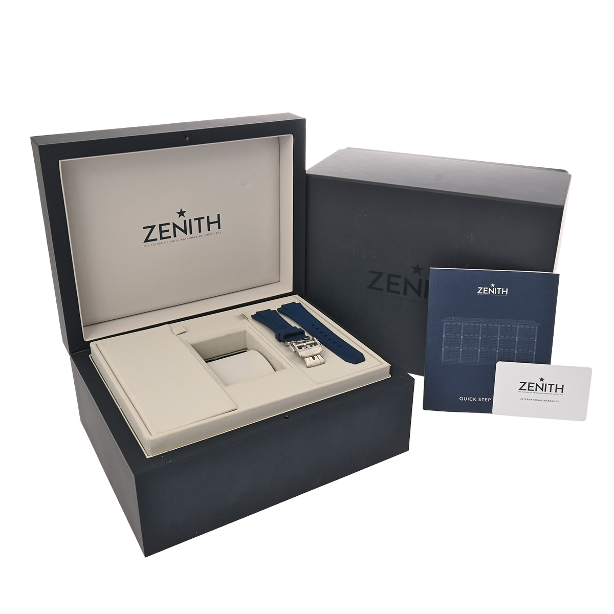 - メーカー保証書( 2022年5月国内購入) / 替えベルト( ラバー/ブルー(若干の使用感有)) / メーカー箱(ダメージ)/冊子