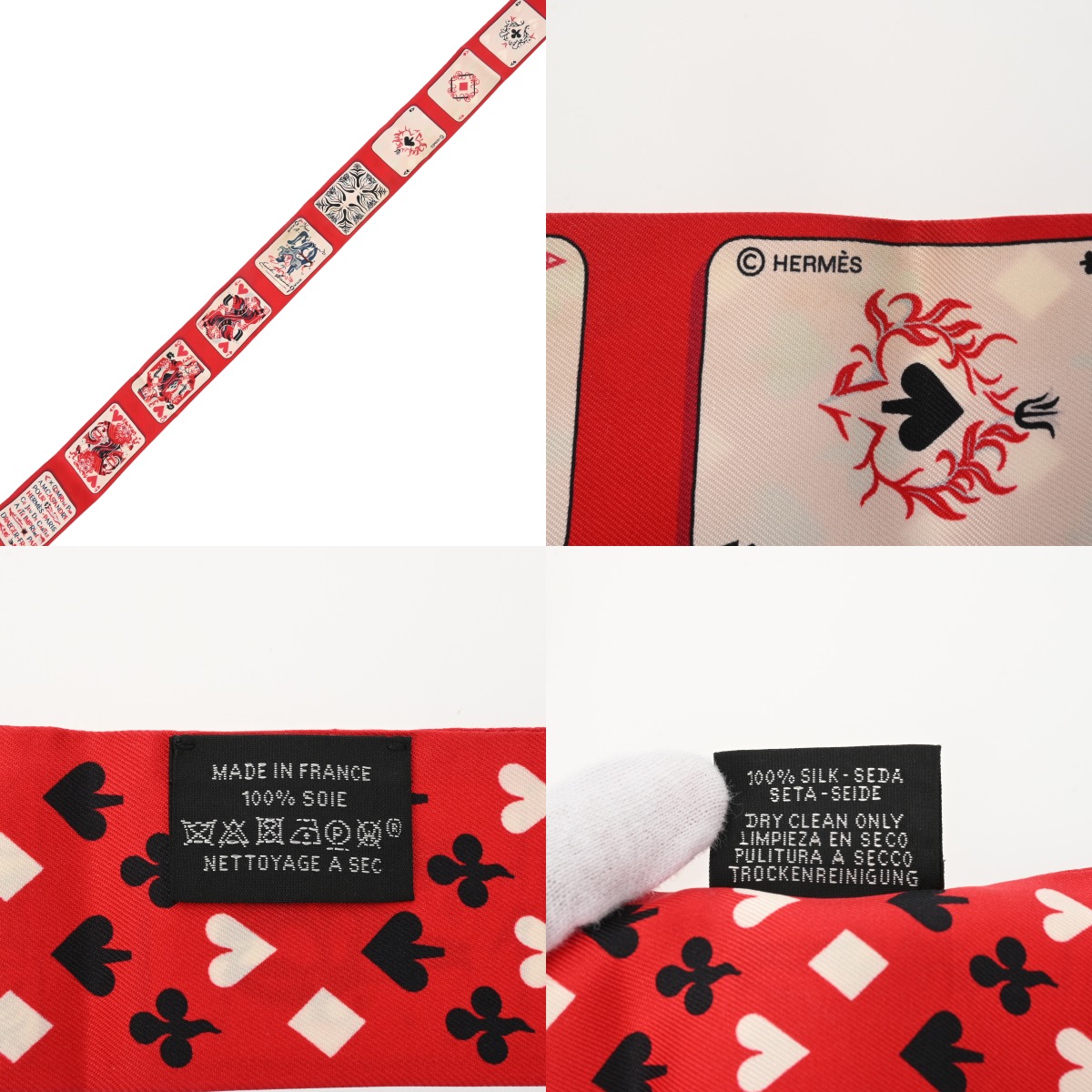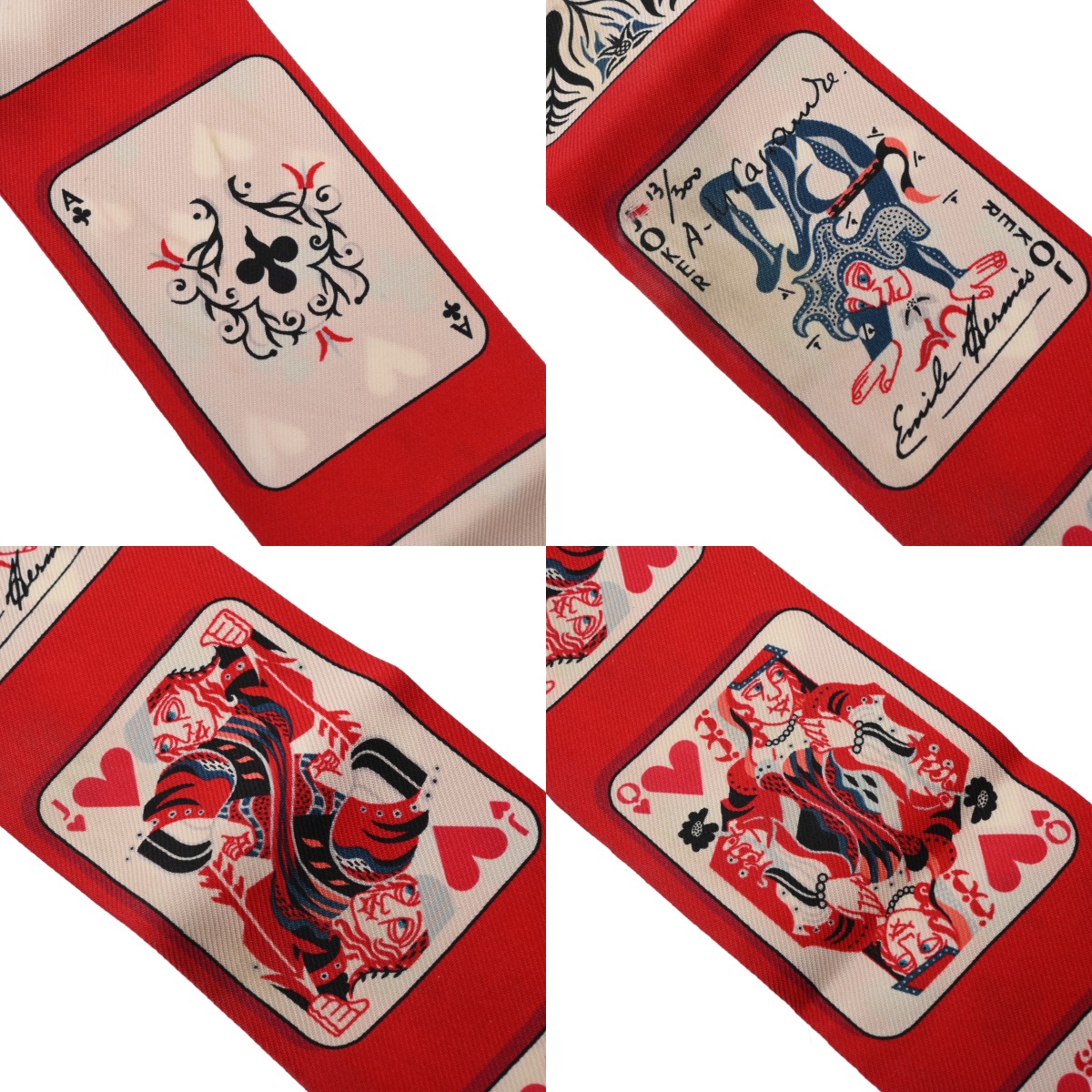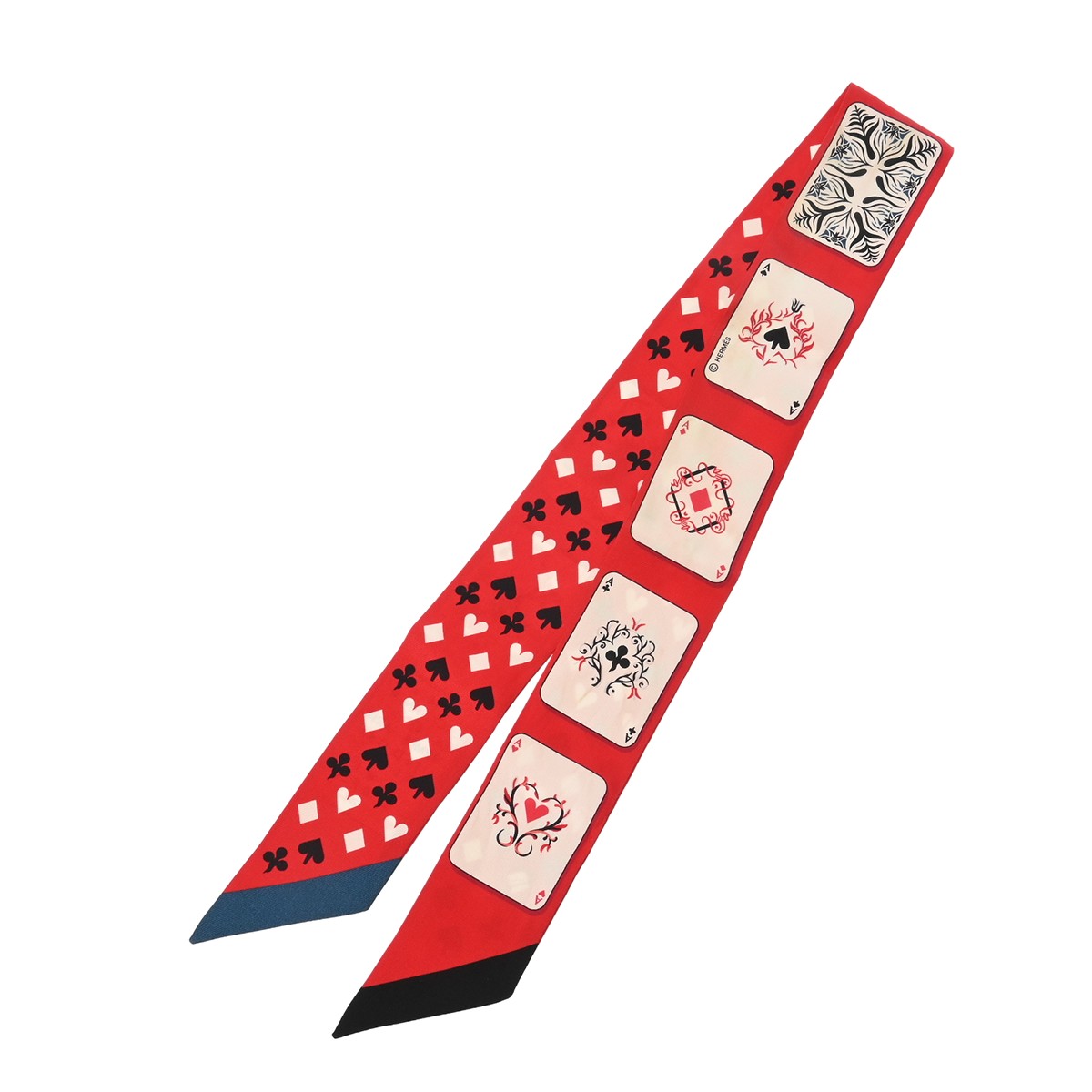 エルメス ツイリー JEU DE CARTES レッド/ブラック/ホワイト シルク100% レディース 【中古】【other】