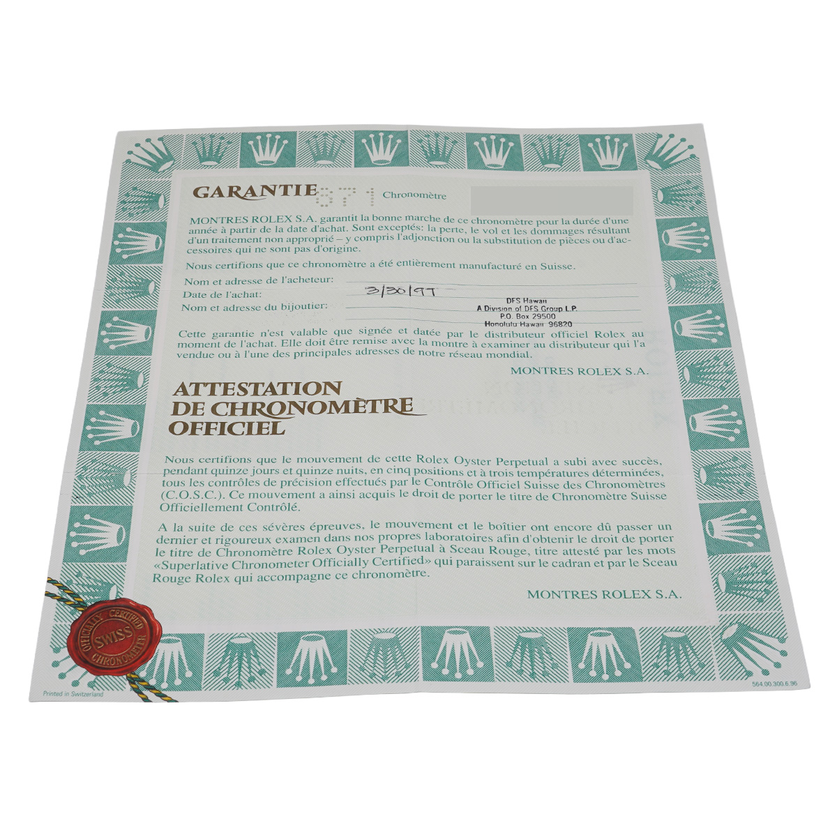 - メーカー保証書( 1997年3月海外購入) / メーカー箱(劣化)/冊子