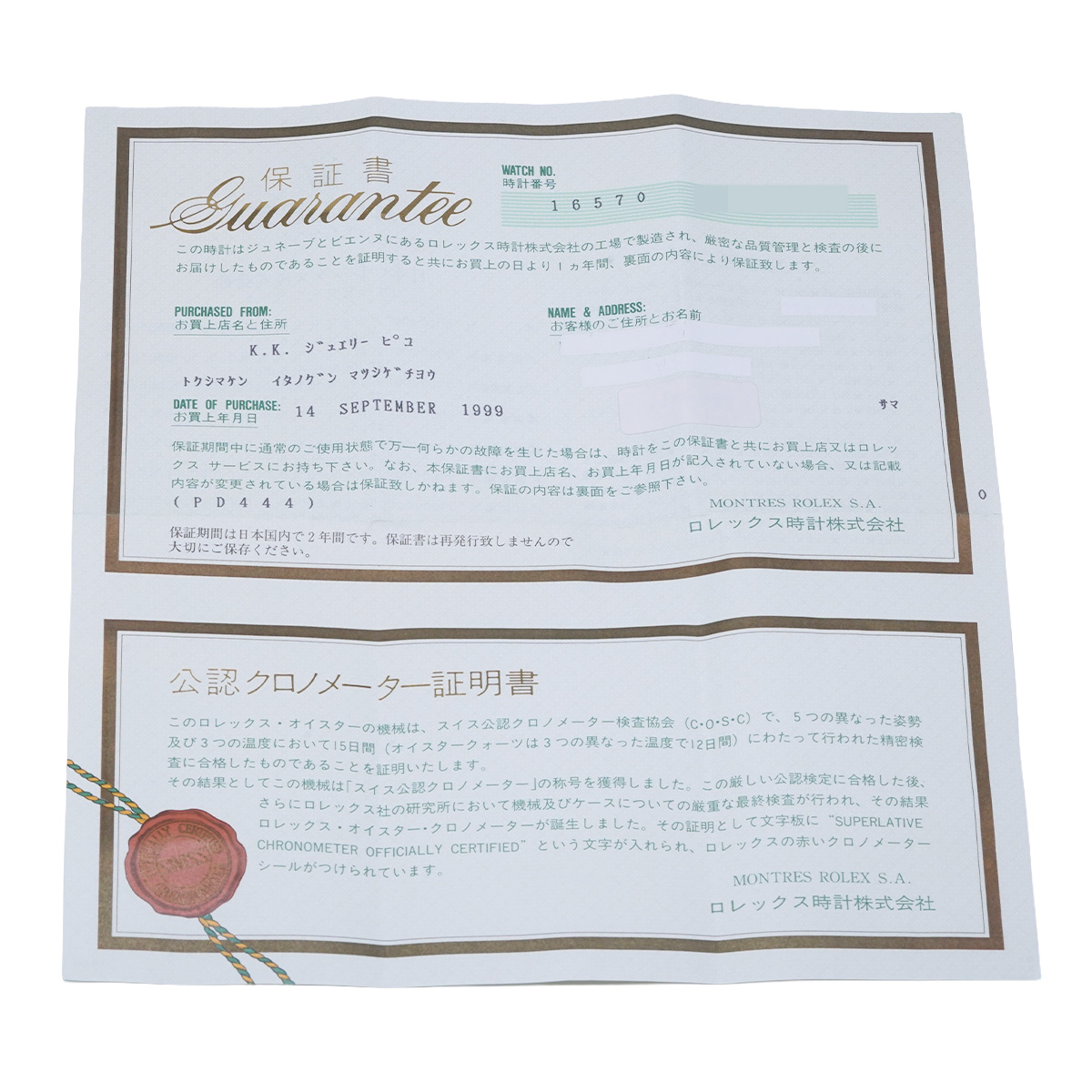 - 時計の当社保証