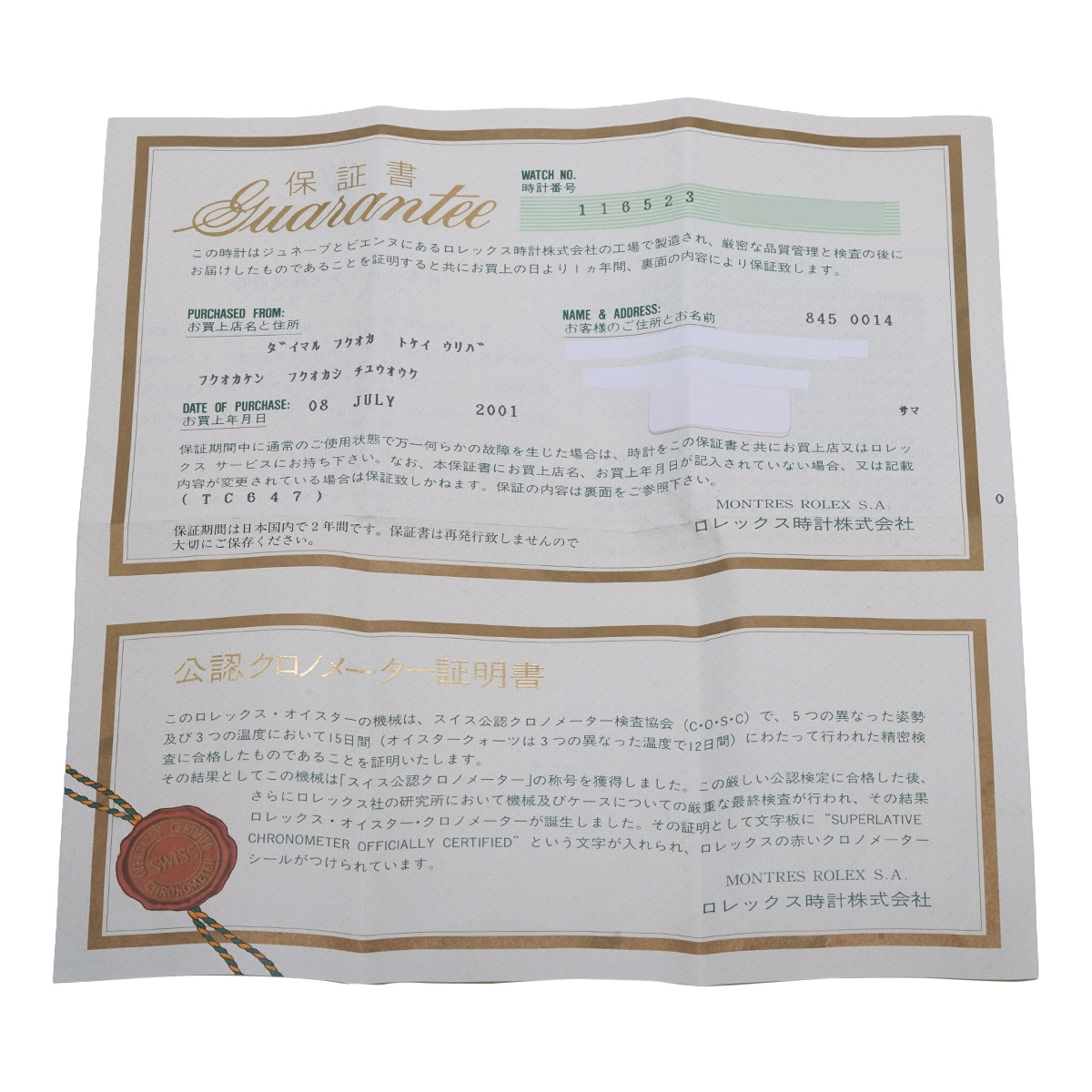 - メーカー保証書( 2001年7月国内購入) / 内箱