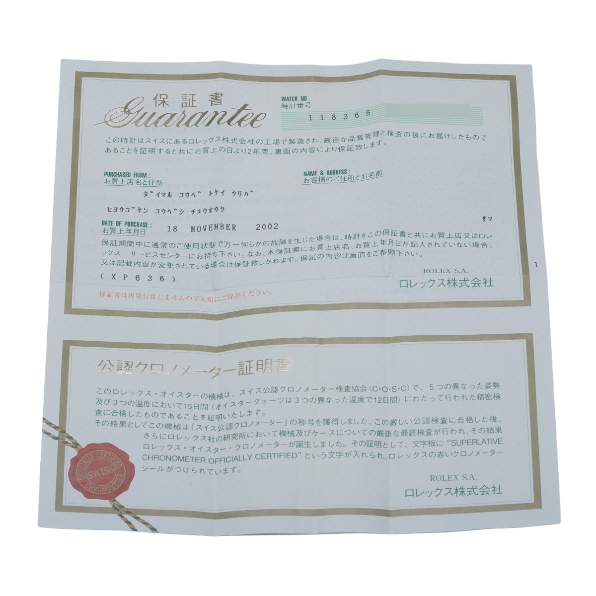 - 時計の当社保証