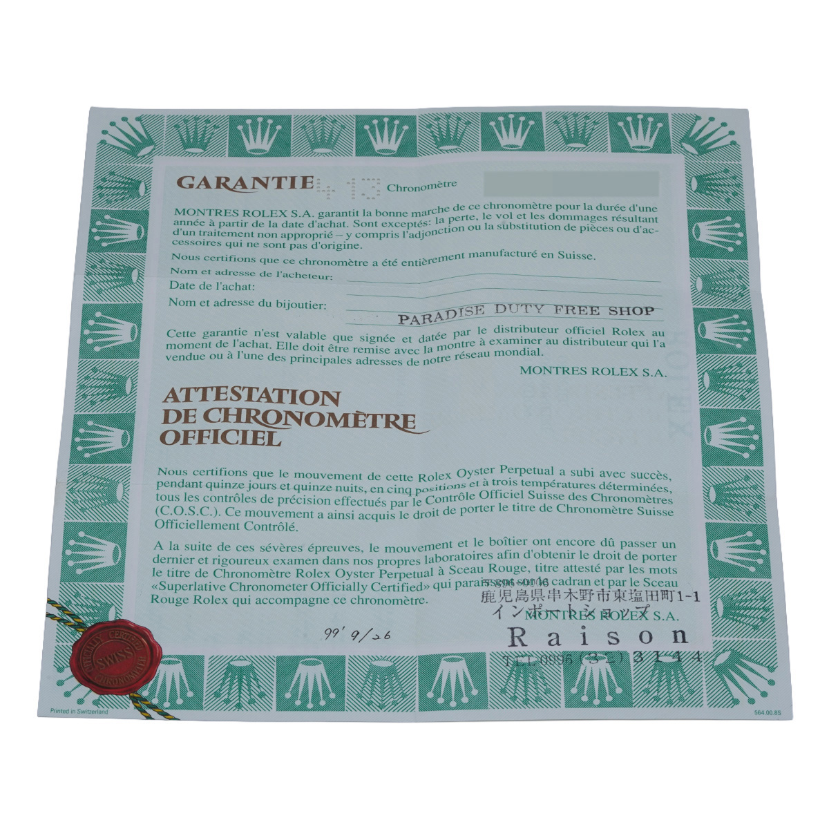 - メーカー保証書( 1999年9月海外購入) / メーカー箱/冊子/タグ